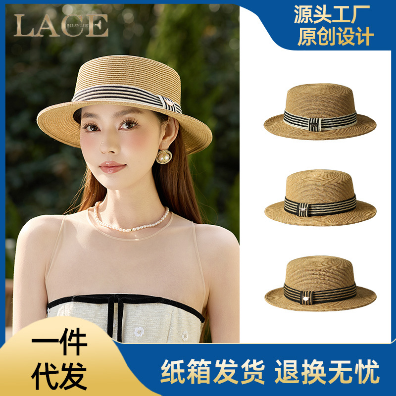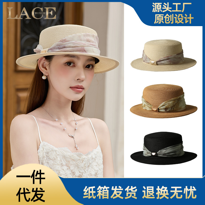 2025 新しい麦わら帽子フラットトップ帽子女性の夏のファッション日よけ帽子多用途日よけ帽子卸売カスタムロゴ