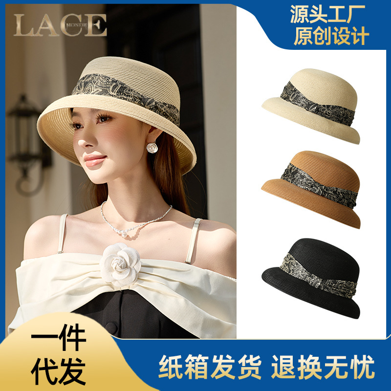 2025年新作麦わら帽子レディースランプシェード金ヘボン風夏日よけ帽子太陽日焼け止め漁師帽子卸売