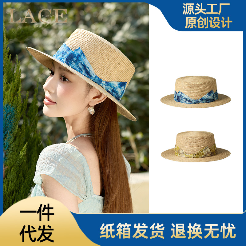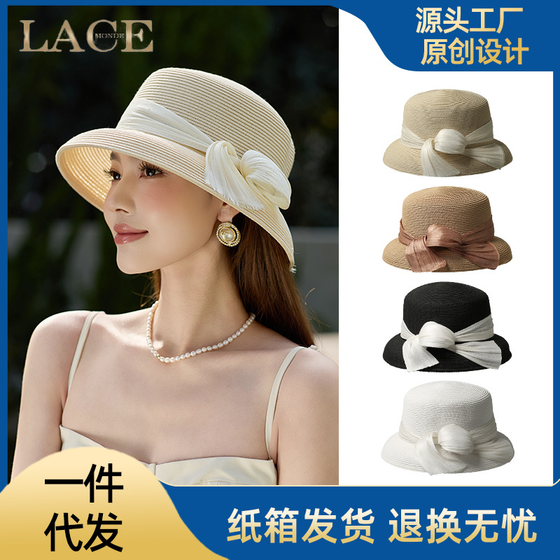 2025年フランス名媛風水墨蝶結びドーム麦わら帽子海辺休暇日よけ帽子日よけ