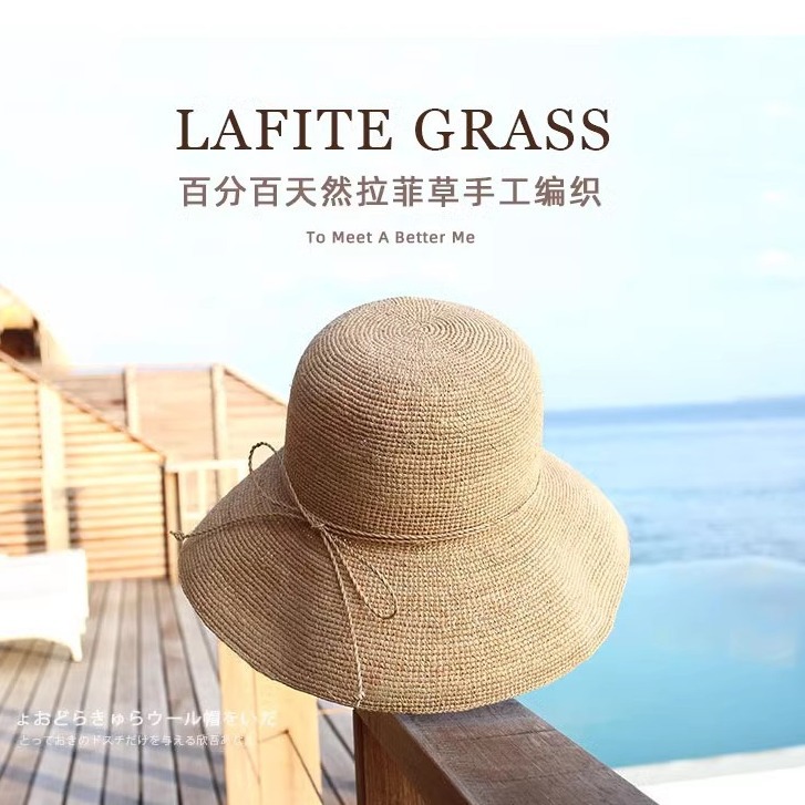 2024夏の旅行は折り畳み式のラフィーの麦わら帽子の女性の大きい軒のビーチ帽子の紫外線防止の工場の卸売りができます。