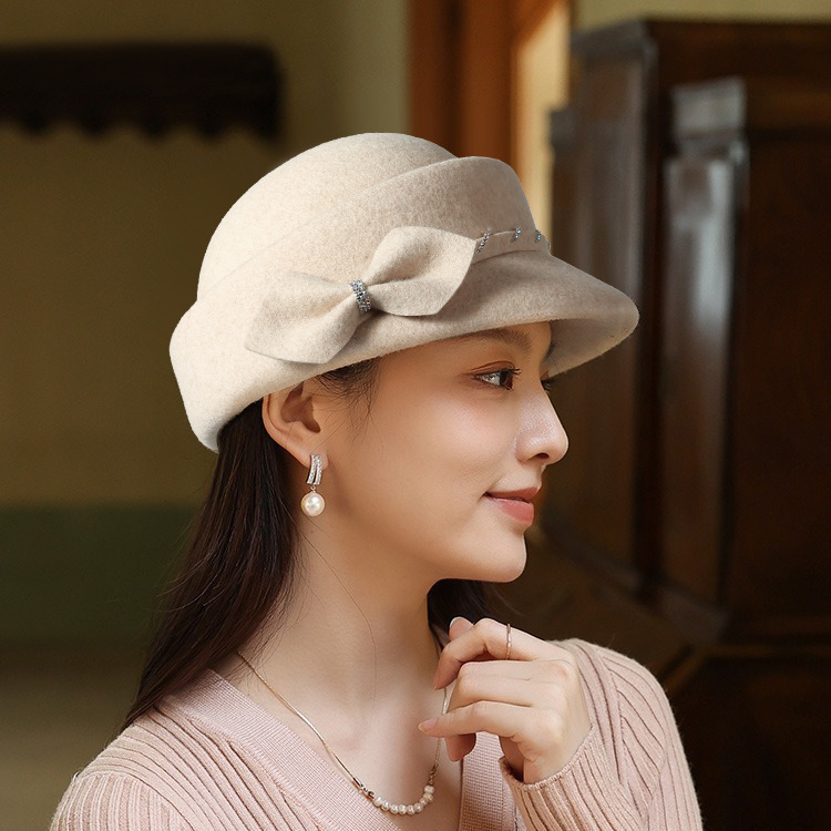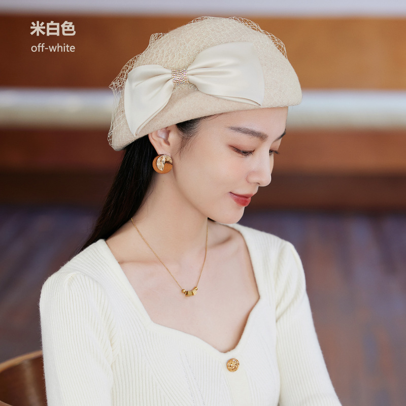 2024新作の帽子の女性の気質の蝶結びの装飾はシンプルでファッション的です。