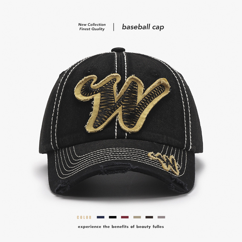 韓国版の刺繍のアルファベットの穴を割った野球の帽子の新型の水洗いのカウボーイのアヒルの舌の帽子のファッションの気質の男女の同項