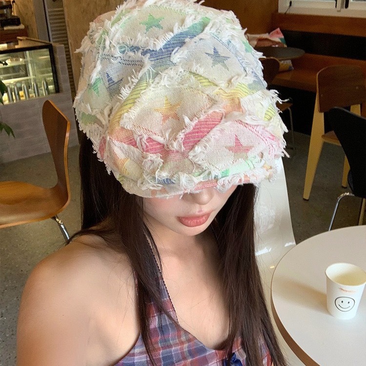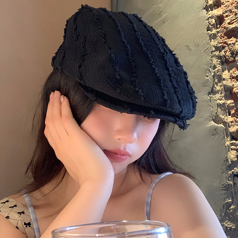 レトロな韓国の春と夏の百合は毛を磨いて古いアヒルの舌の帽子の文芸の画家の帽子をします。