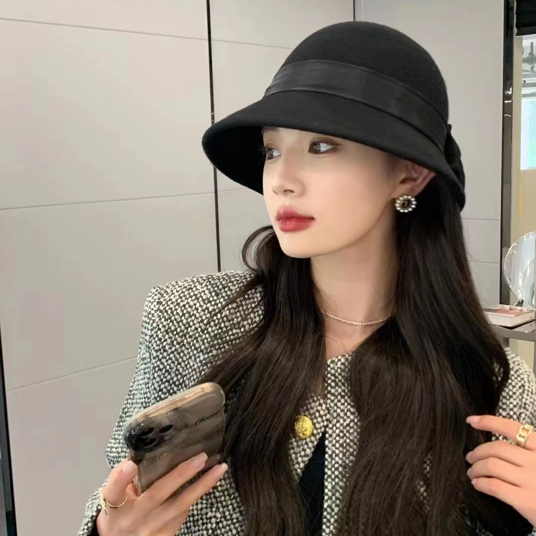 新商品の蝶結びの盆帽女性秋冬ファッション漁師の帽子は日本の優雅でレトロでカジュアルなウールです。