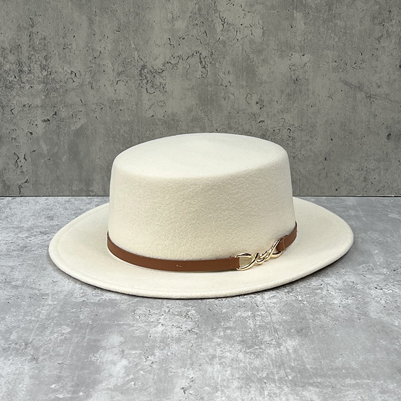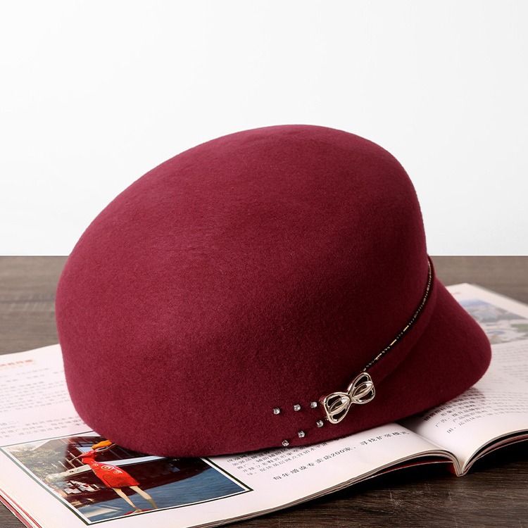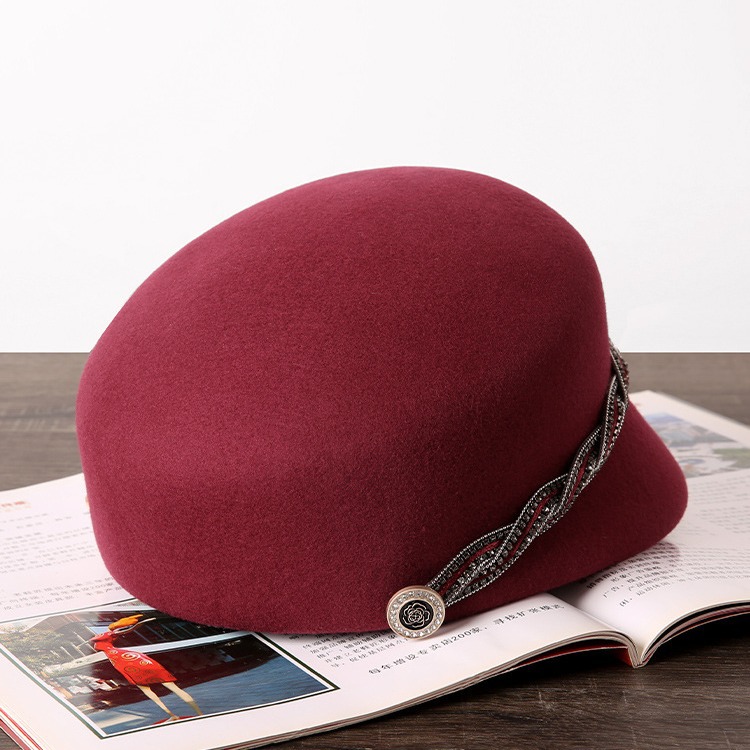 シンプルなレトロなベルトのボタンのウールの帽子の女性の冬の英倫の百合平の帽子のファッションのジャズの帽子の毛は平沿帽です。