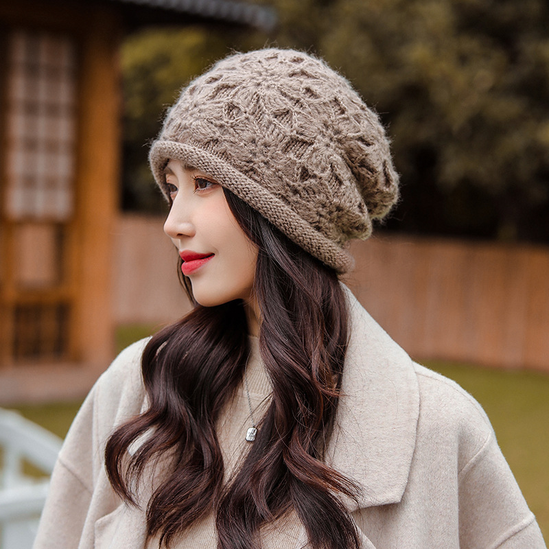 手作りのかぎ針の花の帽子の女性の秋冬の百合の保温の柔らかい花の帽子の二重の手作りの毛糸の帽子の頭をかぶせます。