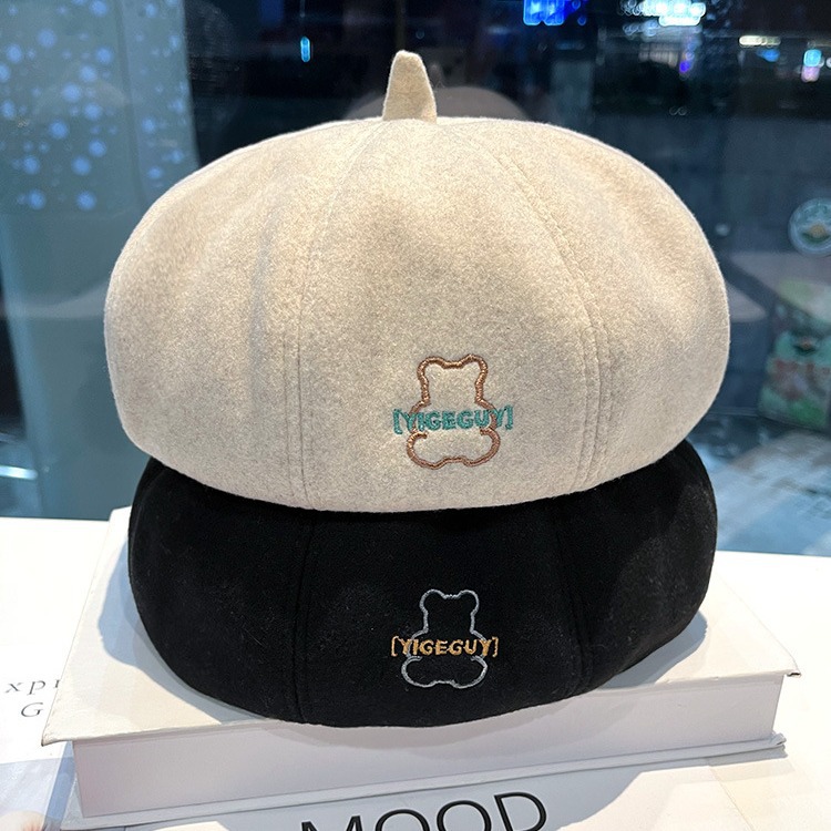 かわいい漫画の熊の刺繍のベレー帽の女性の秋冬の保温の毛です。