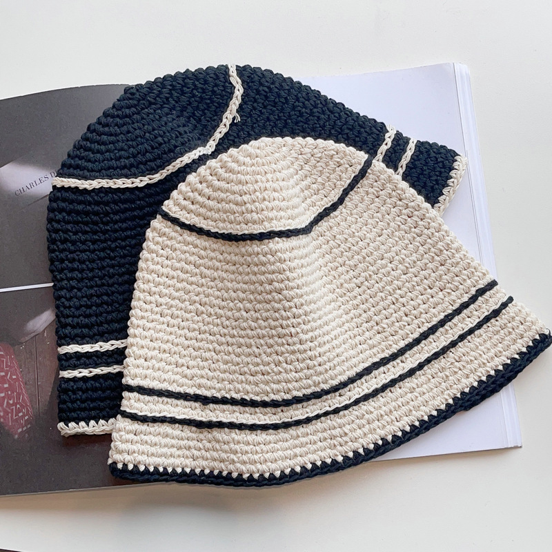 日系レジャー軒春秋手フック漁師帽はシンプルで、色の綿の糸にぶつかって桶の帽子を編む男女です。