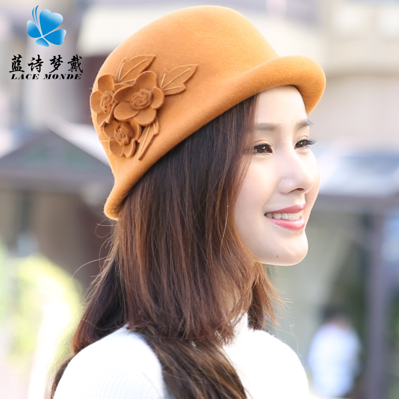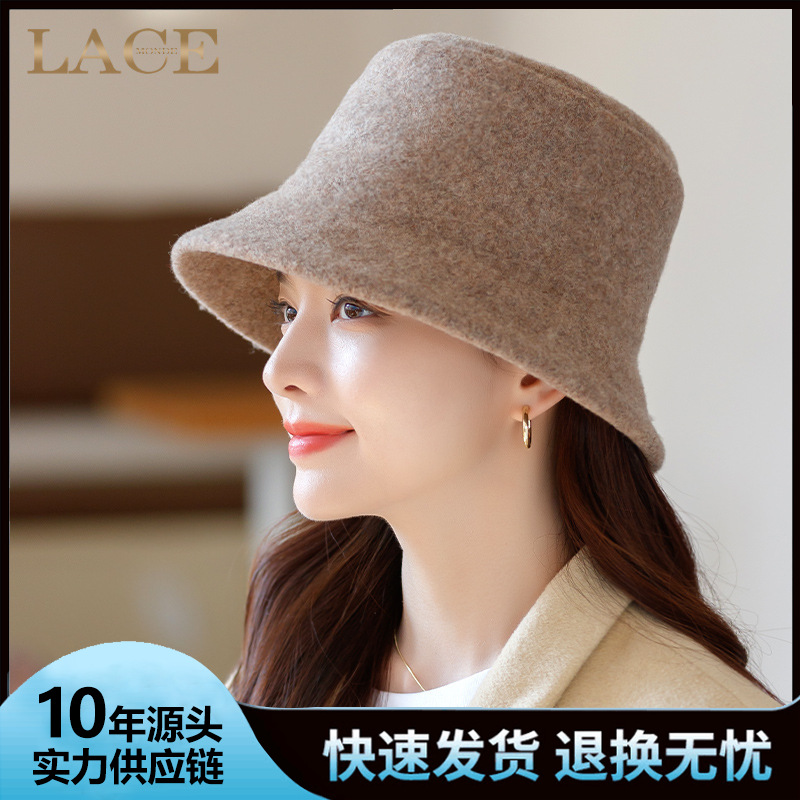 ウールの漁師の帽子秋冬insのファッションの新型の百合の復古の丸い顔は日本の折り畳みの盆の帽子の女性に適します。