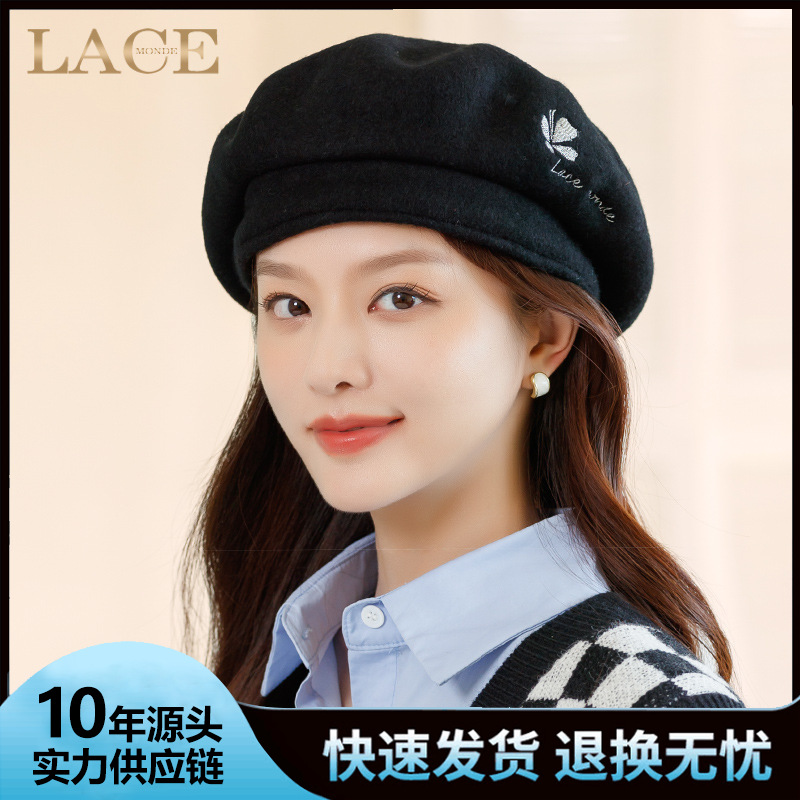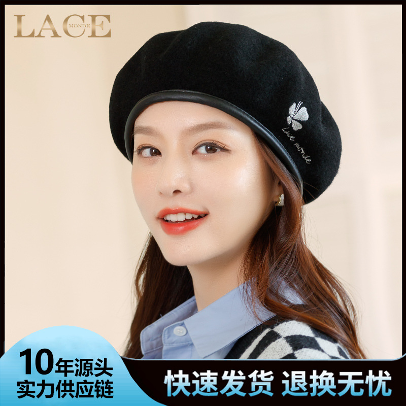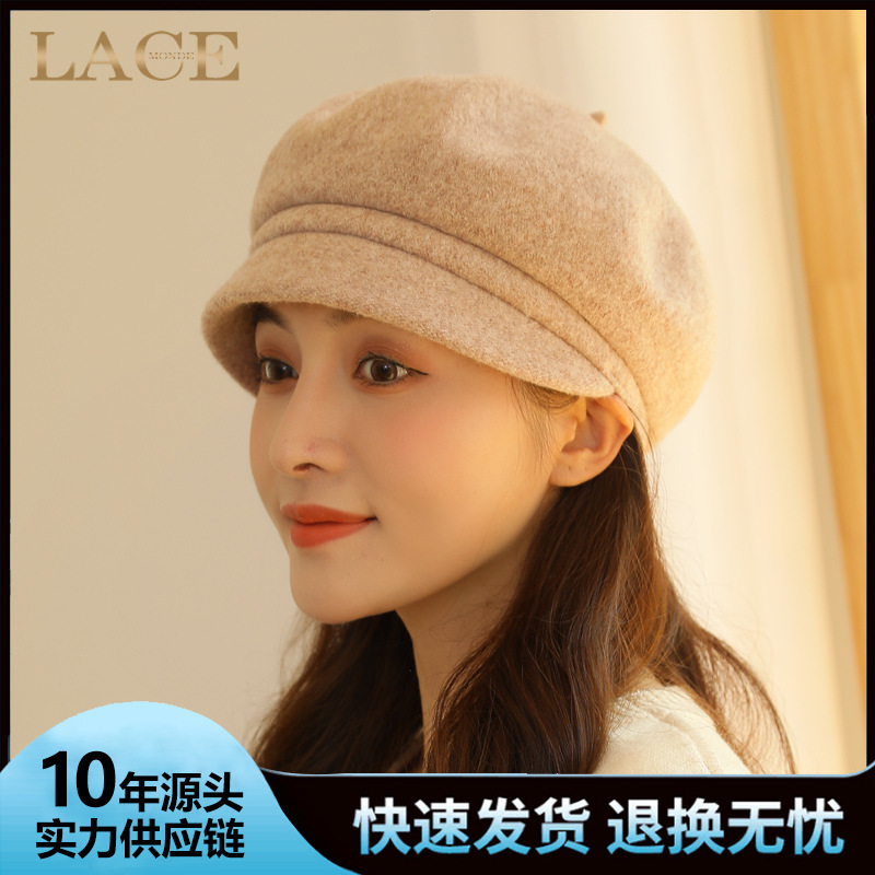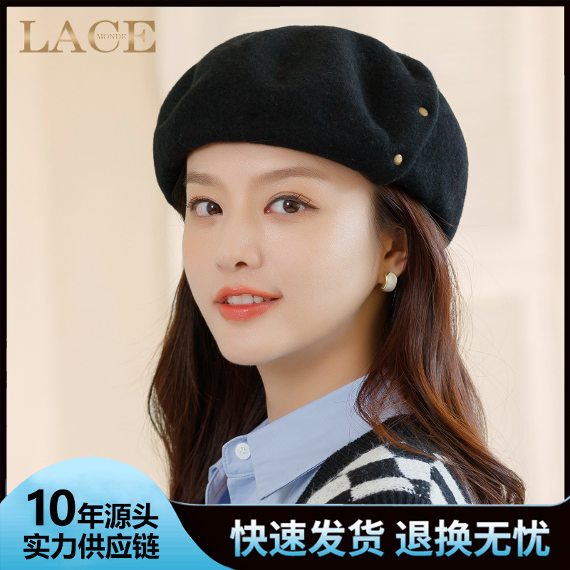 ベレー帽の女性春秋モデル2023百合ウールの丸い顔は、プリクラの画家帽子の韓国版カボチャの帽子に適しています。