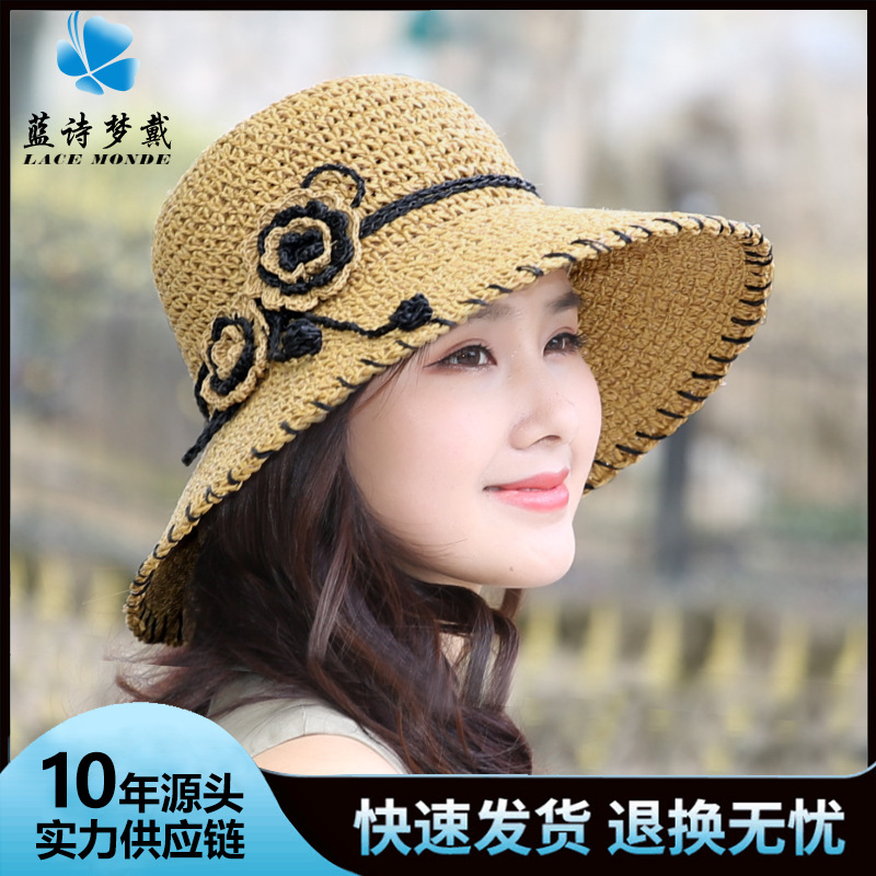 (工場を探す) 小清新な麦わら帽子夏の紫外線防止折り畳み可能なビーチ帽草編みの日よけ帽子
