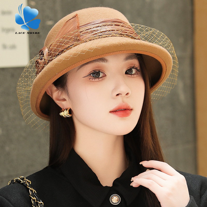 女性の秋冬のシルクの麻のウールのフランス式のヘボン風の盆の帽子の名媛風のフェルトの帽子の中でランプの帽子の卸売りを掛けます。