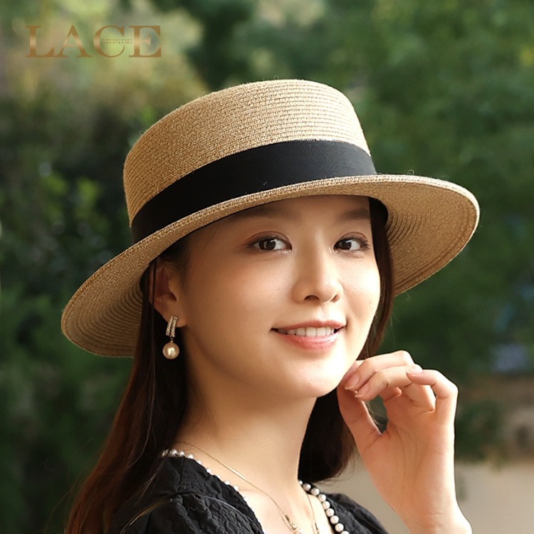 日系平頂麦わら帽子女夏日よけ日焼け止め紫外線防止麦わら帽子小清新海辺休暇ビーチ帽子潮