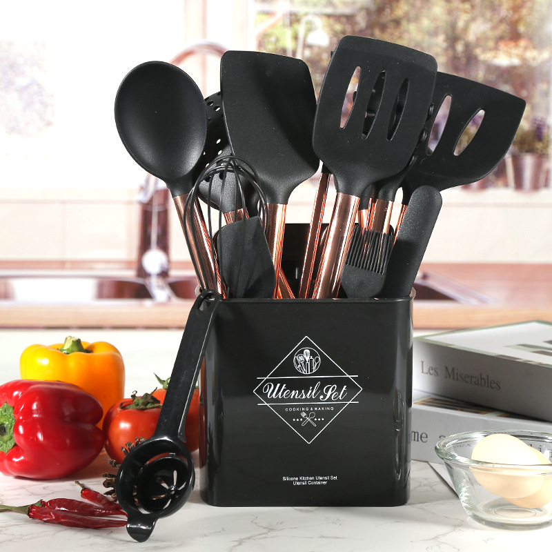 クロスボーダー新品収納バケツ入れステンレスパイプ柄シリコン調理器具11点セット調理シャベルスプーン
