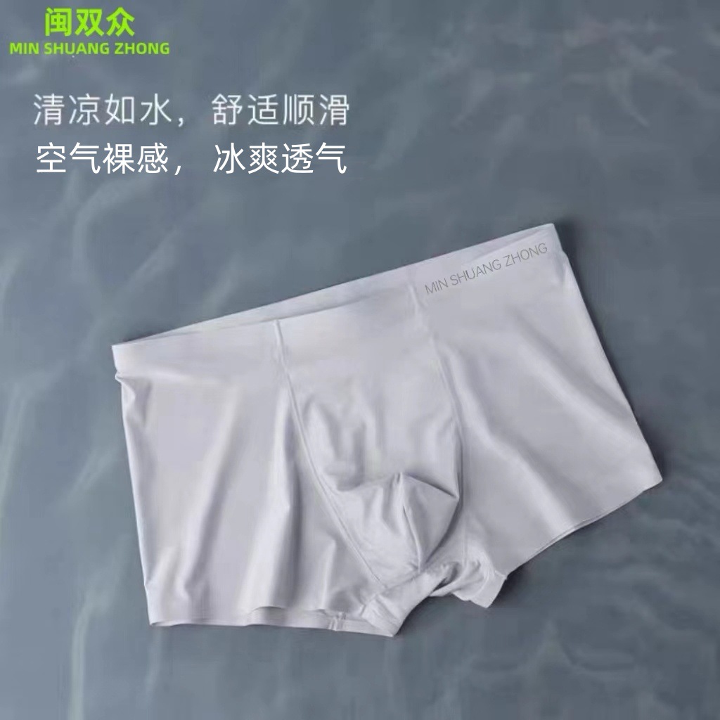 カスタマイズされたソースファクトリーアイスシルクシームレスメンズ下着クール夏薄い抗菌通気性ボクサーパンツ