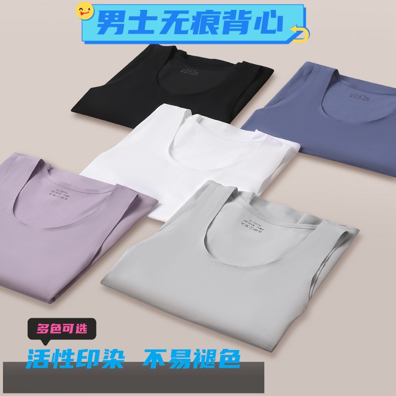 新しい夏のシームレスメンズベスト、セクシーなクロスオーバースタイル、カジュアルなラウンドネック、ゆったりとした快適なスポーツスタイル