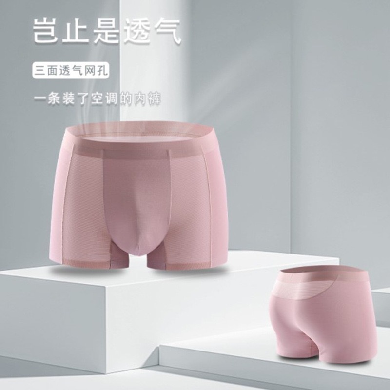 メンズ夏のアイスシルク空調パンツ三面通気性シームレス四家パンツティーンエイジャーの下着