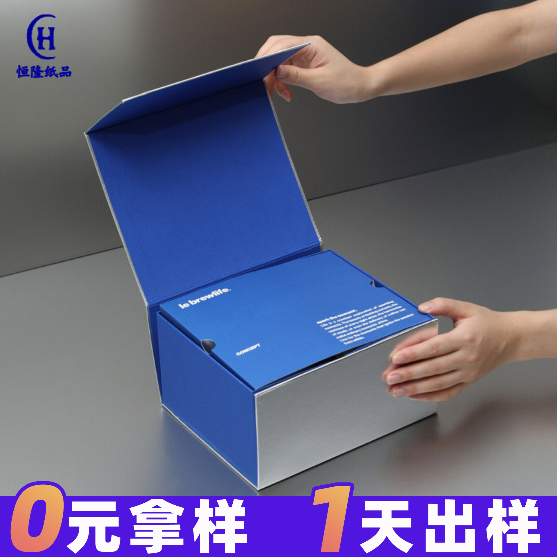 カスタマイズされたハイエンドシルバーカードギフトボックスブルー二層包装ボックスカスタムジュエリーボックスフリップトップボックスカスタムメイドの大きなギフトボックス