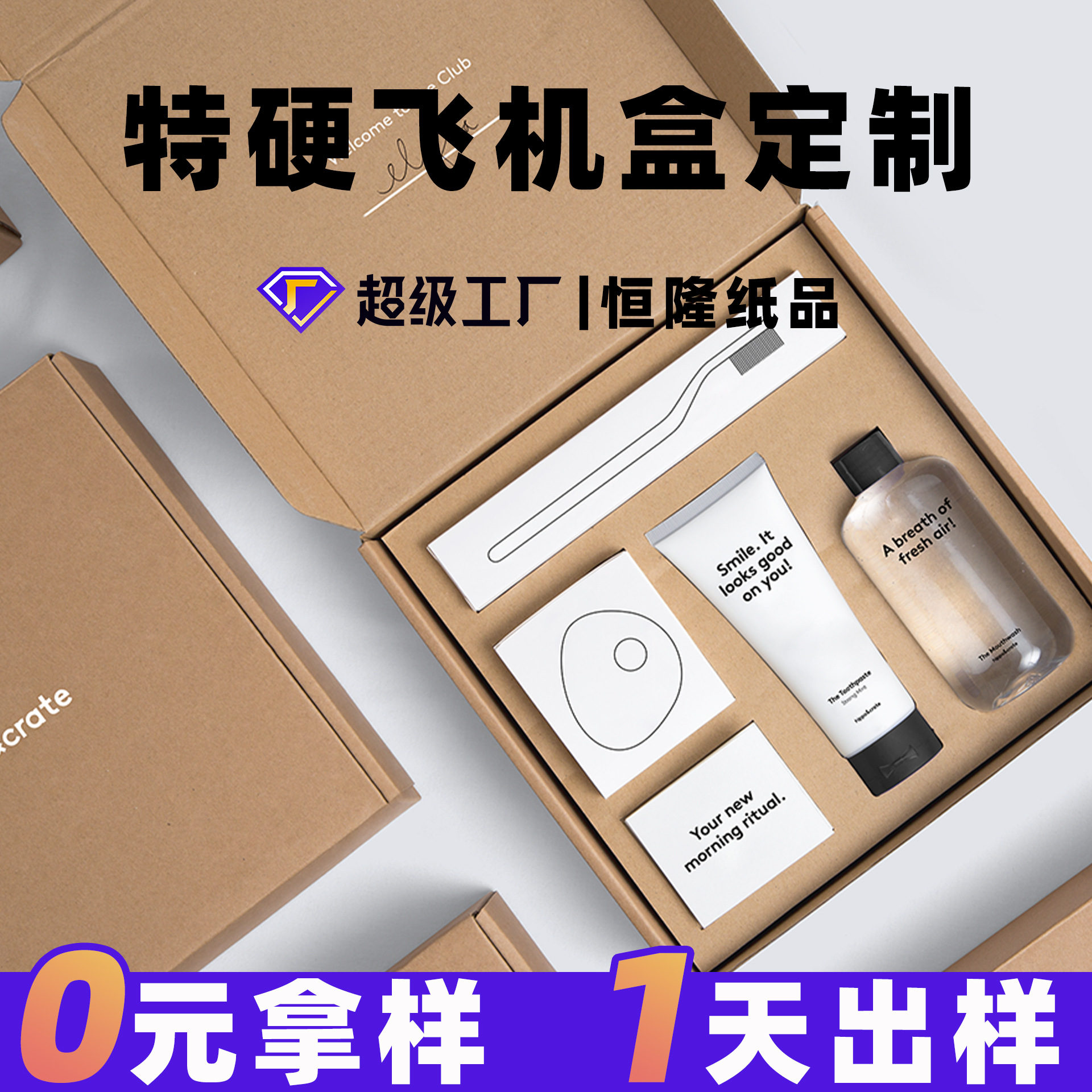 ホワイトフライトボックスカスタマイズされたカードスロットクラフト紙印刷ホワイトインクフライトボックスカートン洗浄およびケア製品スキンケア製品包装箱