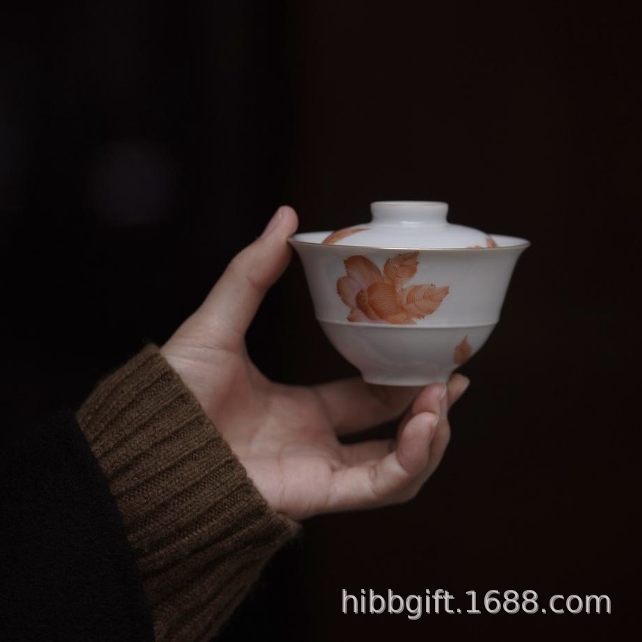 賦山堂蓋碗紅淡彩清蓋碗茶杯手描き茶碗茶具礼箱プレゼント代理