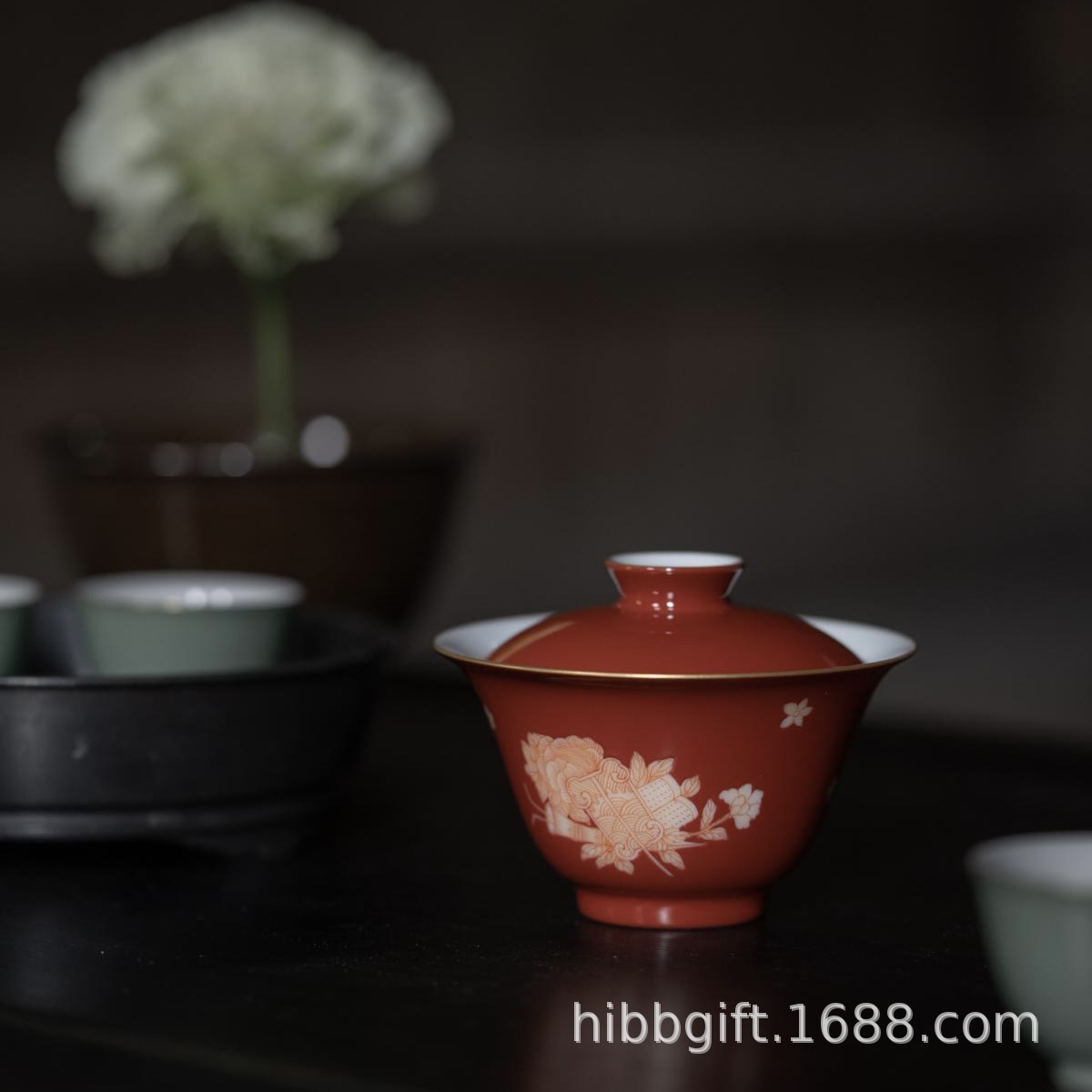 山堂蓋碗紅花時蓋碗茶杯手描き茶碗茶具ギフトボックス