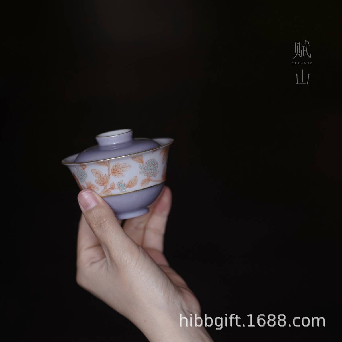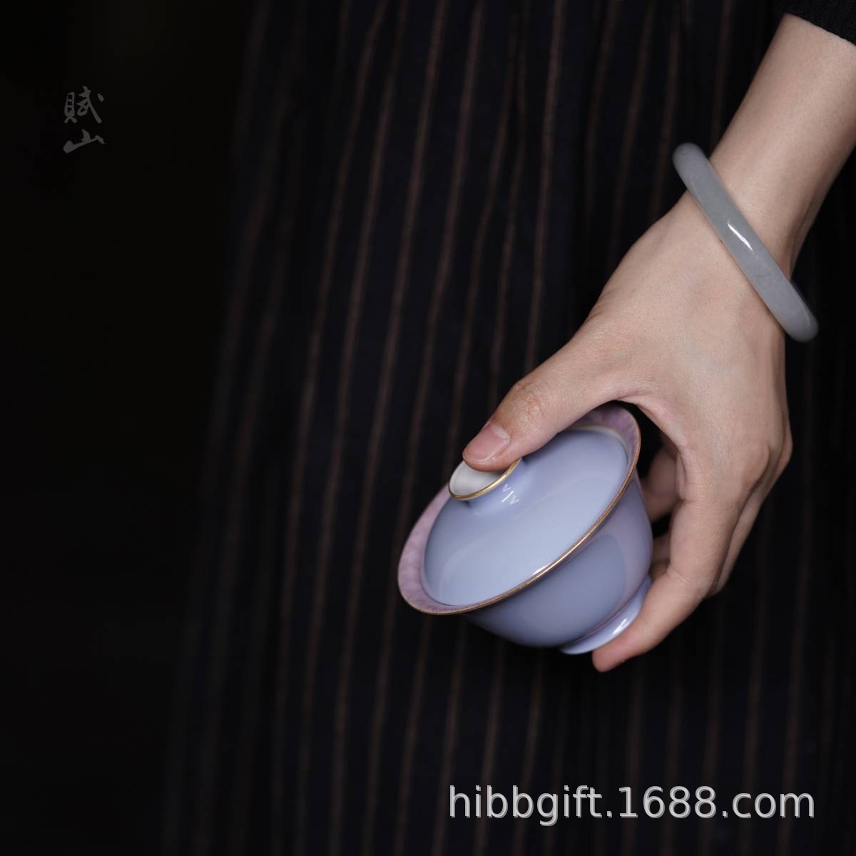 賦山堂蓋碗青衣紫海棠清境蓋碗茶杯手描き茶碗茶具礼箱代件