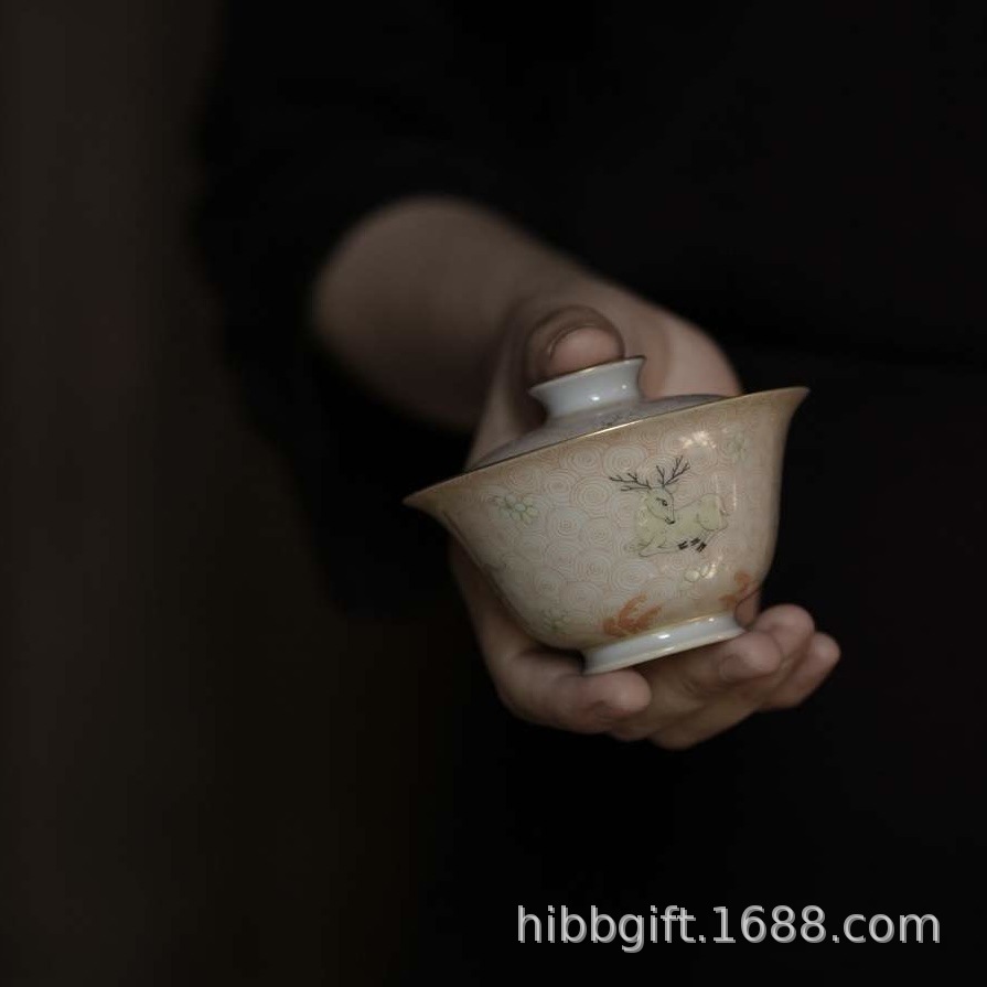 山堂蓋椀鹿輪紋蓋碗茶杯手描き茶碗茶具礼箱プレゼント代理