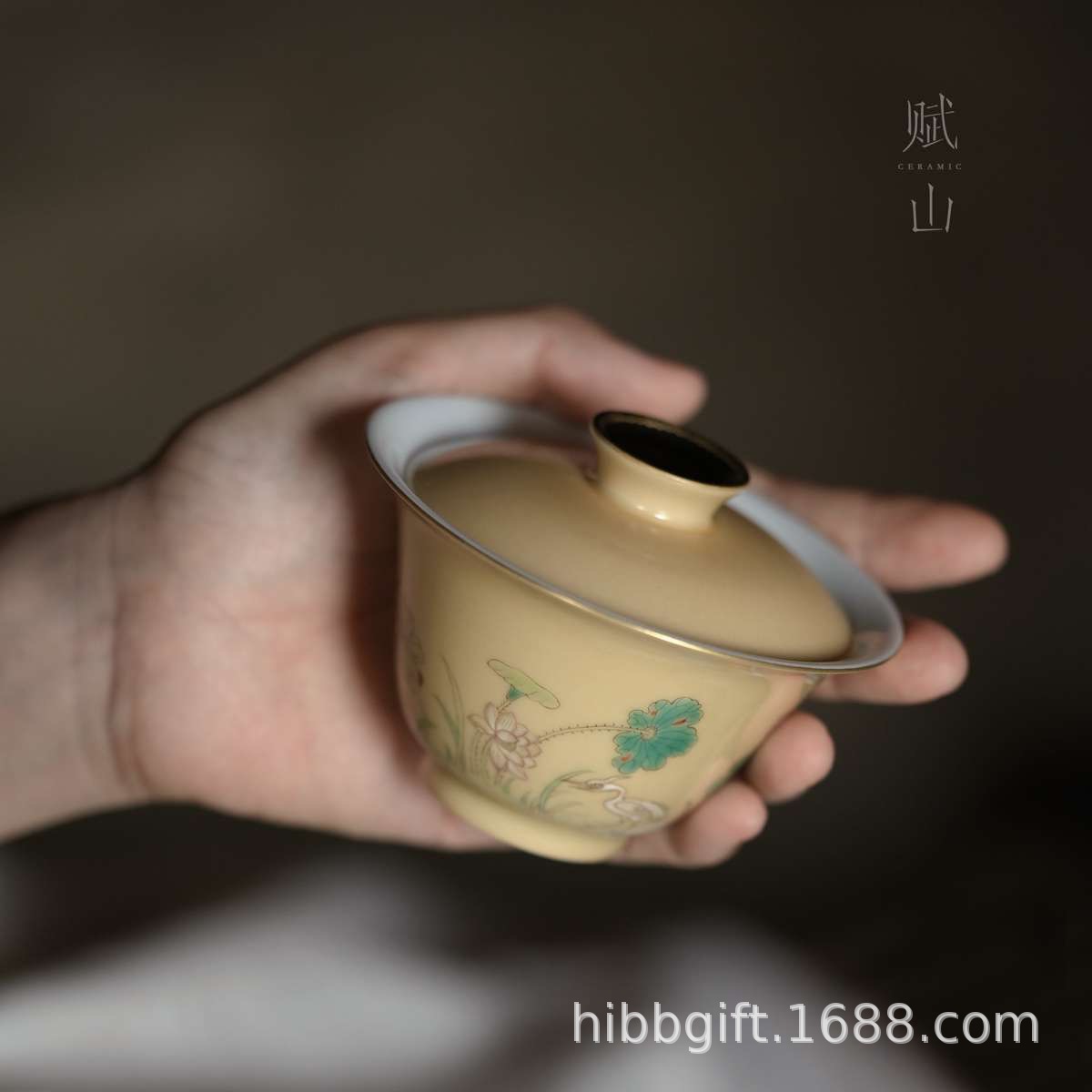 賦山堂蓋碗ウグイス黄白鷺清荷蓋碗茶杯手描き茶碗茶具礼箱代件