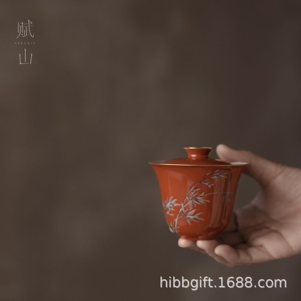 賦山堂蓋碗紅風揺翠竹蓋碗茶杯手描き茶碗茶具礼箱プレゼント代理