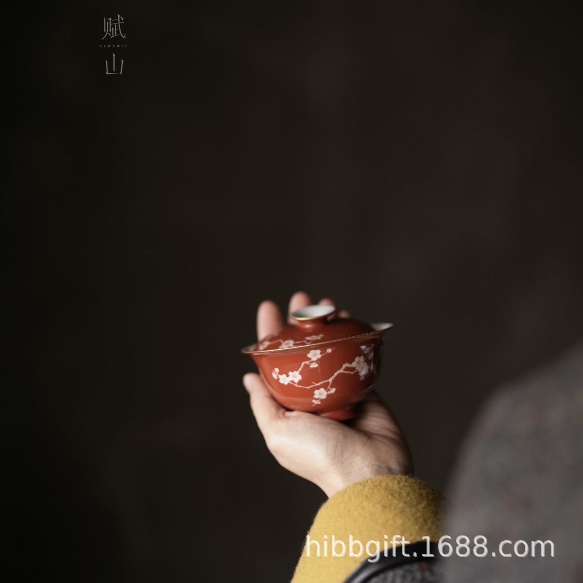 賦山堂蓋碗紅上紅梅蘭蓋碗茶杯手描き茶碗茶具礼箱プレゼント代理