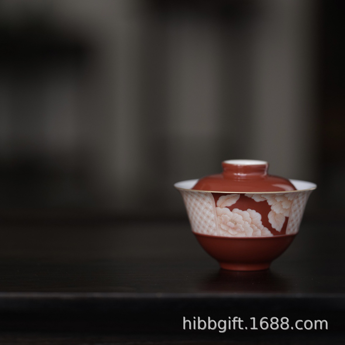 山堂の蓋の碗の赤い上の赤い花の辺の紋様の蓋の碗のお茶の杯の手描きはお茶の碗のお茶を入れます。
