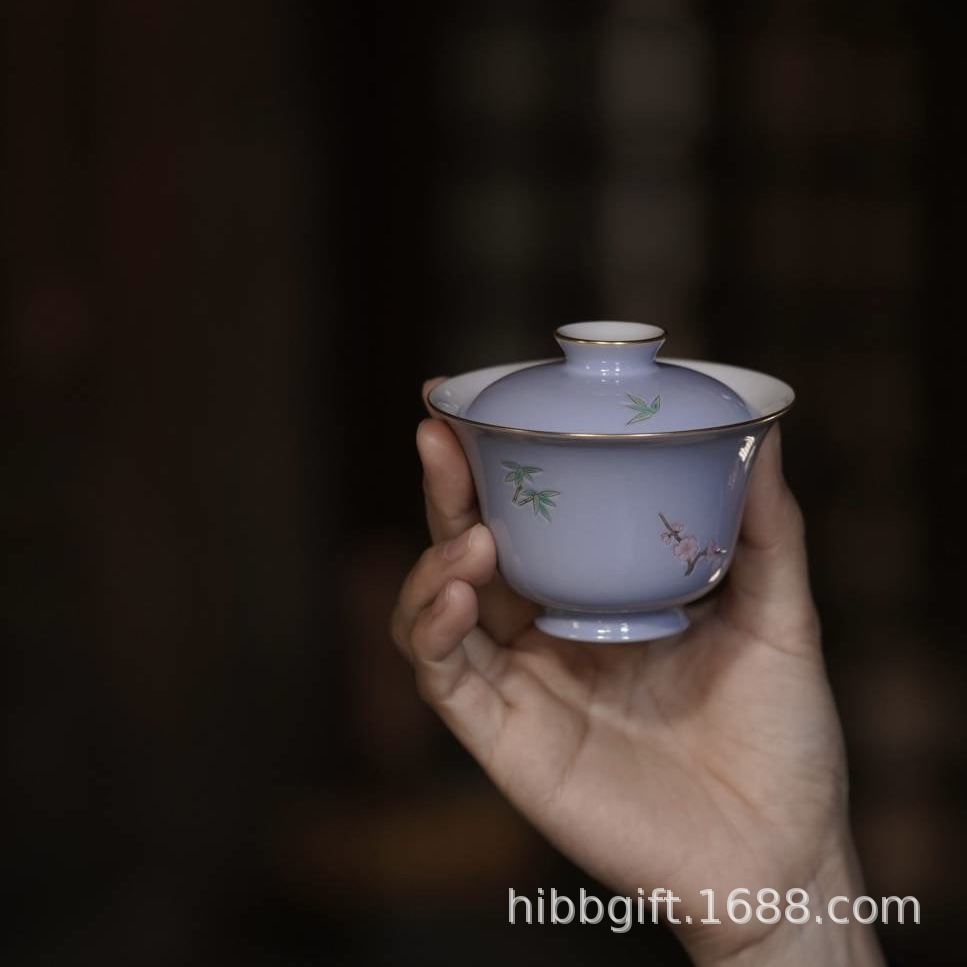 賦山堂蓋碗雲山藍梅竹双清蓋碗茶杯手描き茶碗茶具礼箱代件