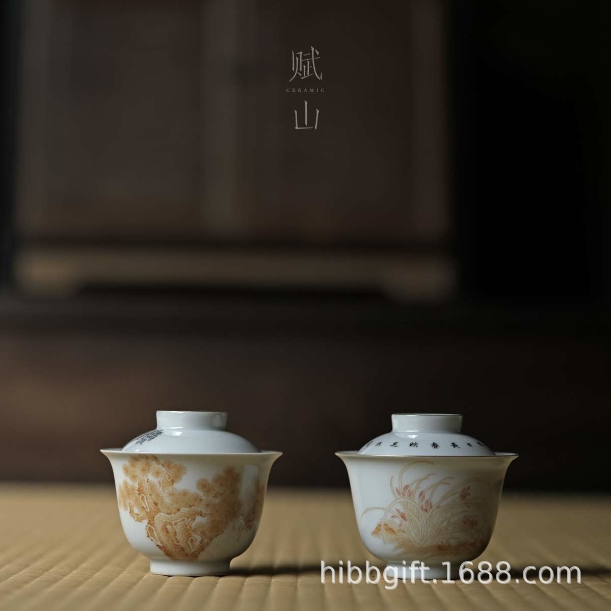 山堂蓋碗明茶茶茶茶松の声蓋碗茶杯手描き茶碗茶器プレゼント