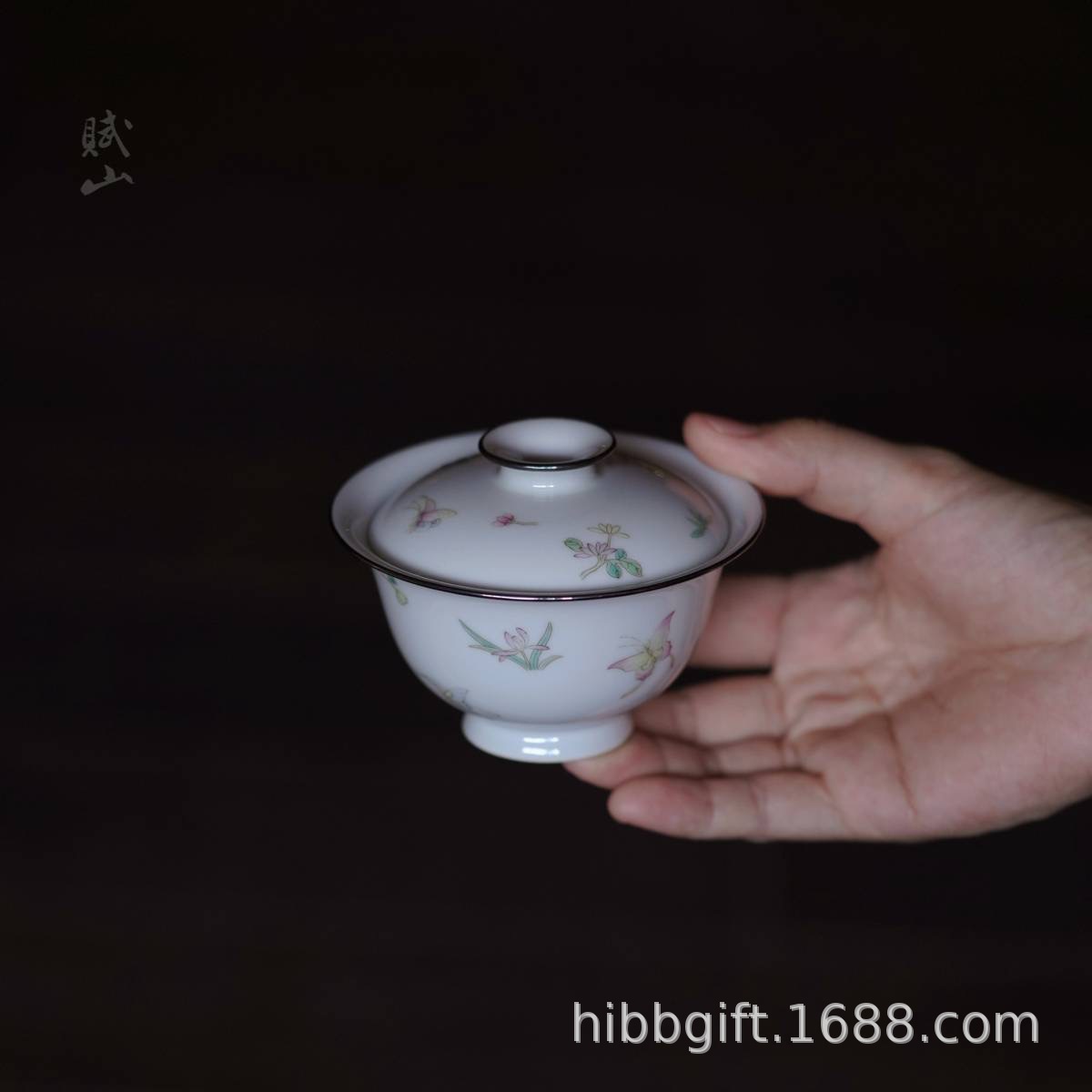 賦山堂蓋碗青松銀口蓋碗茶杯手描き茶碗茶具ギフトボックス