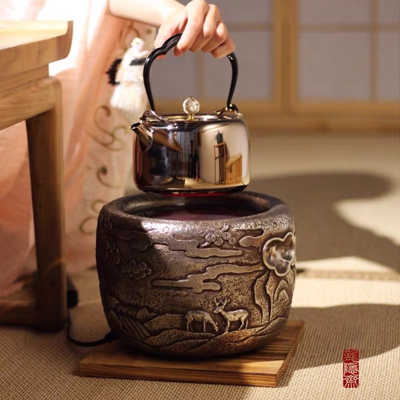 龍隠斎電気陶炉円満高山岩士薫金銀煮茶炉手作り静音陶磁器煮茶器電気茶炉