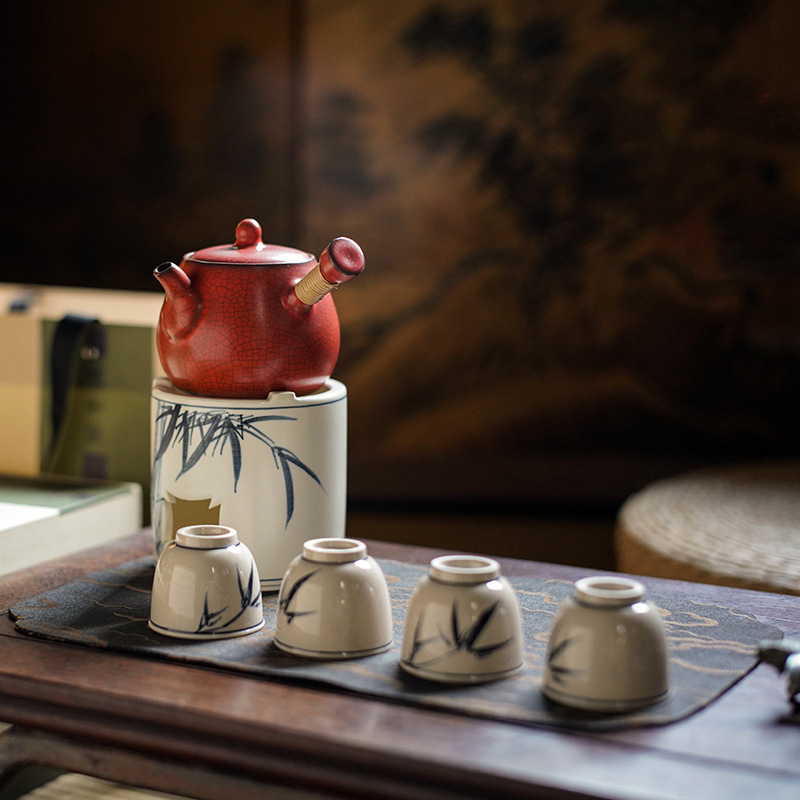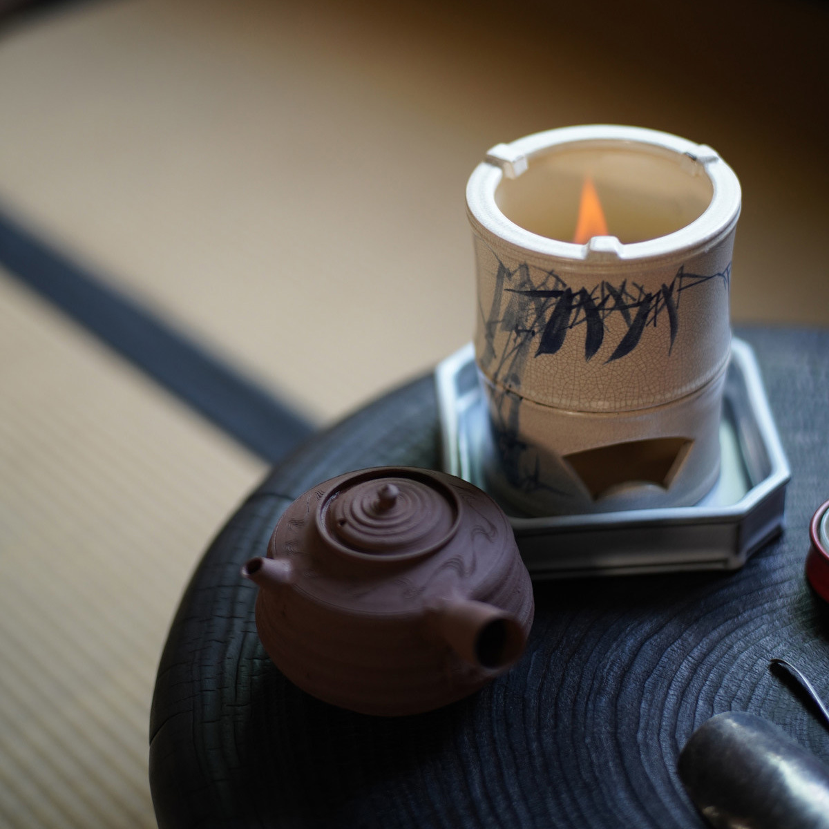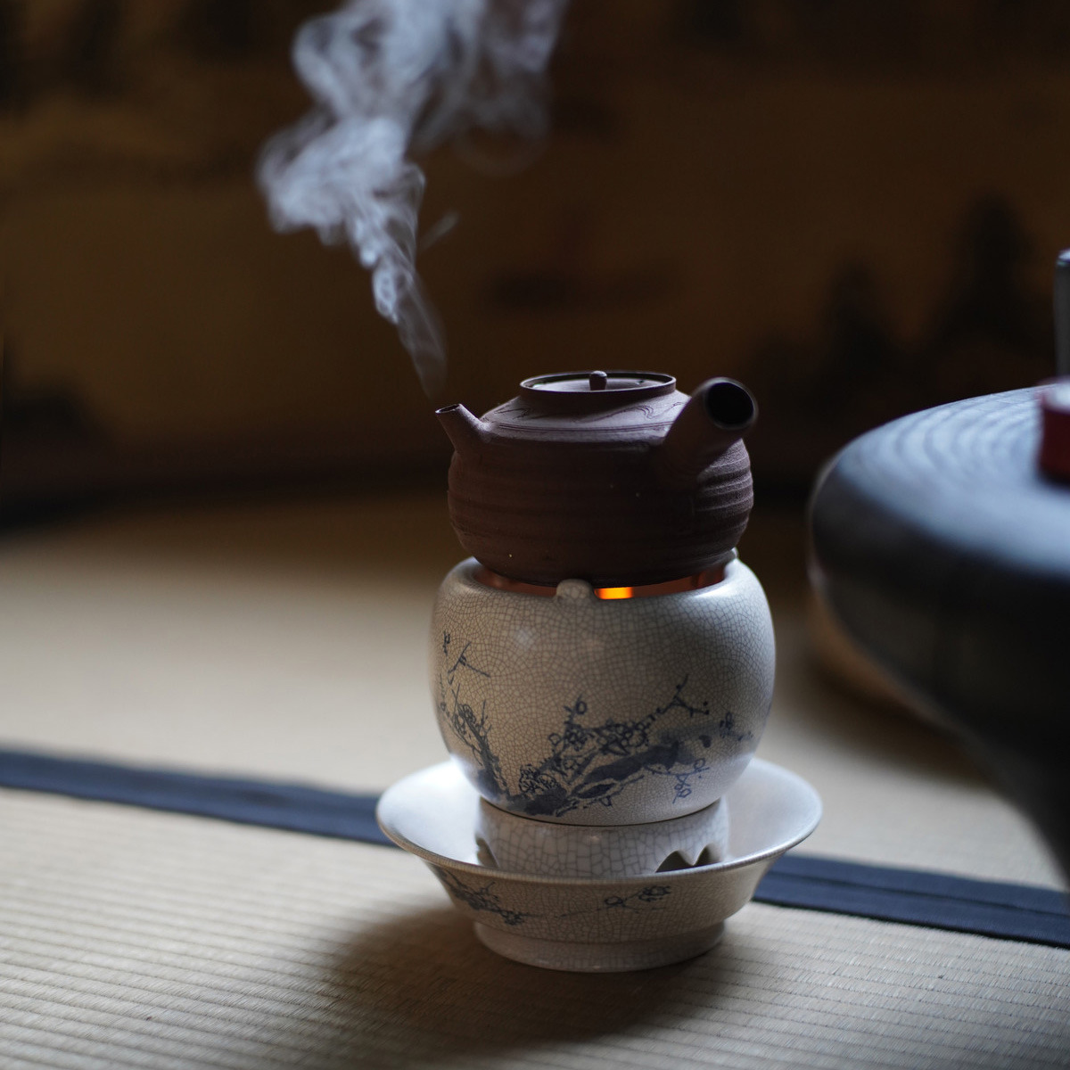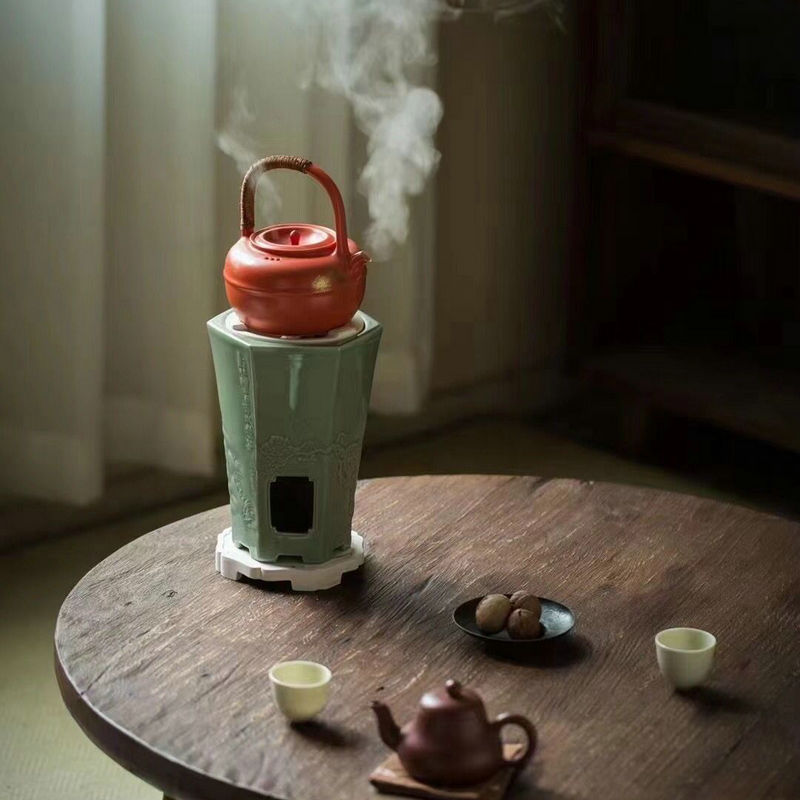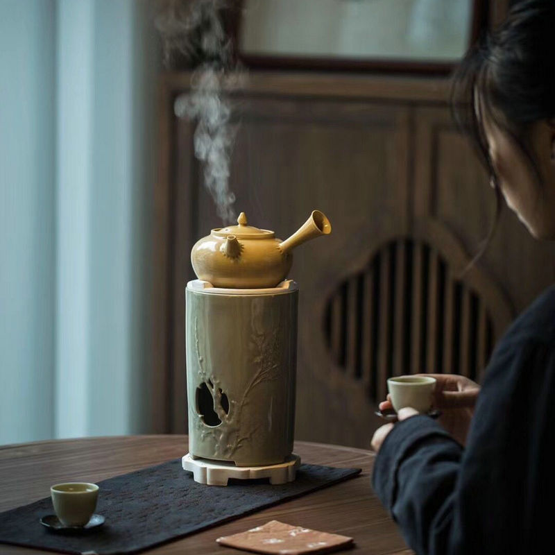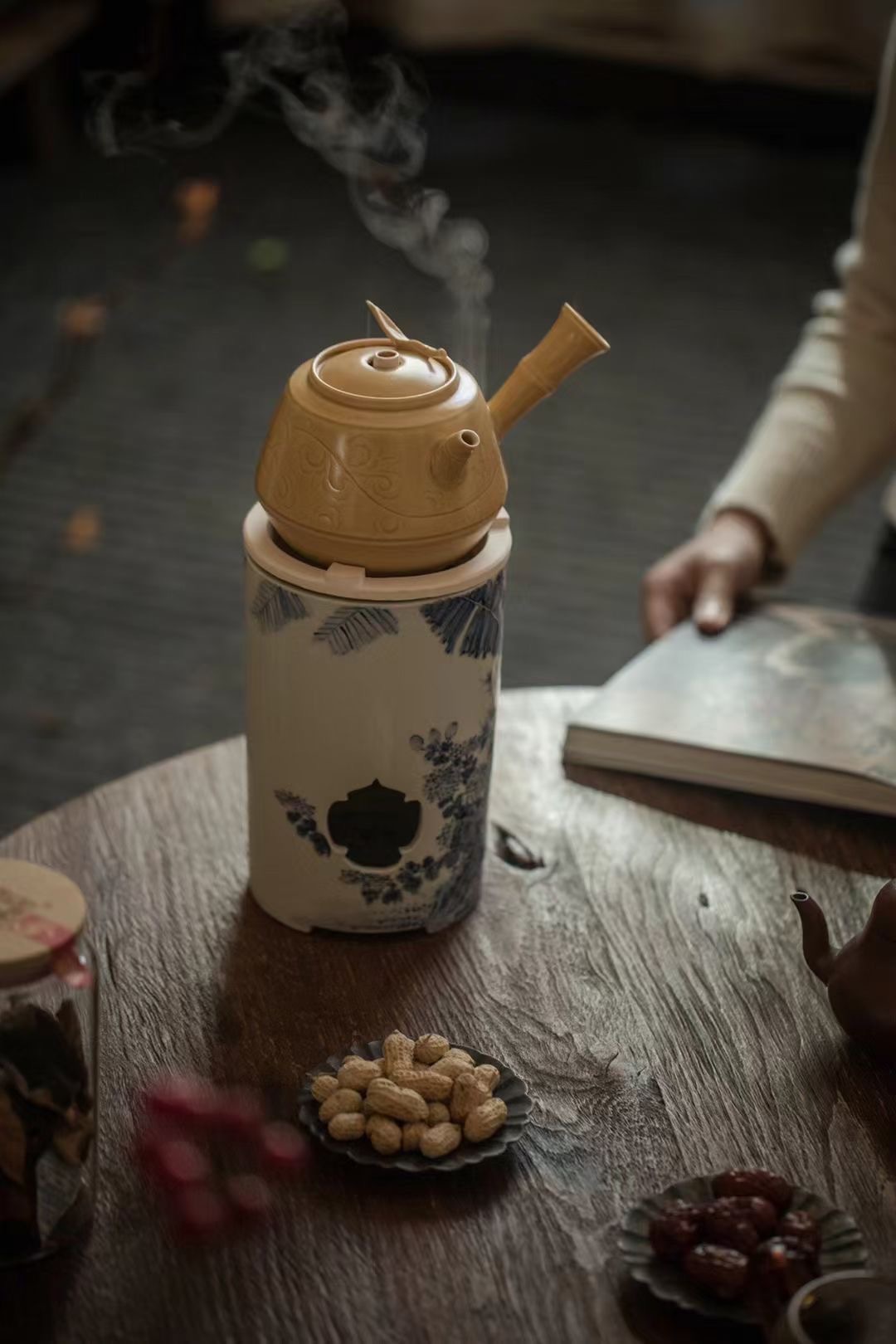 梵山堂新商品青花竹葉竹節分体炉炭素ストーブでお茶を煮ます。