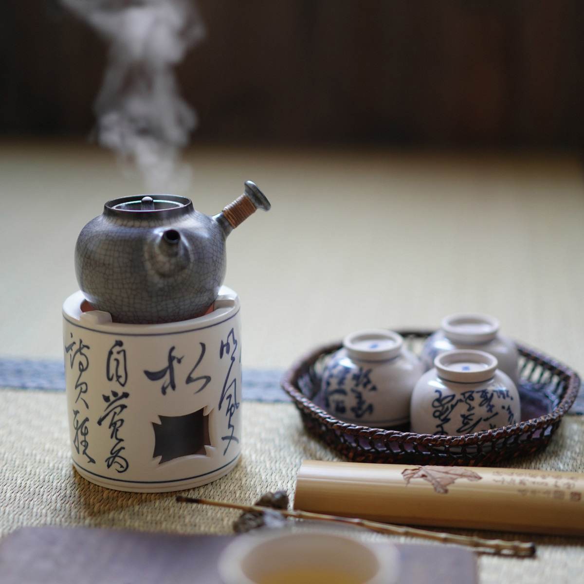 梵山堂青花詩文直身アルコールストーブティーポットろうそくランプベース加熱お茶煮茶器卸売り
