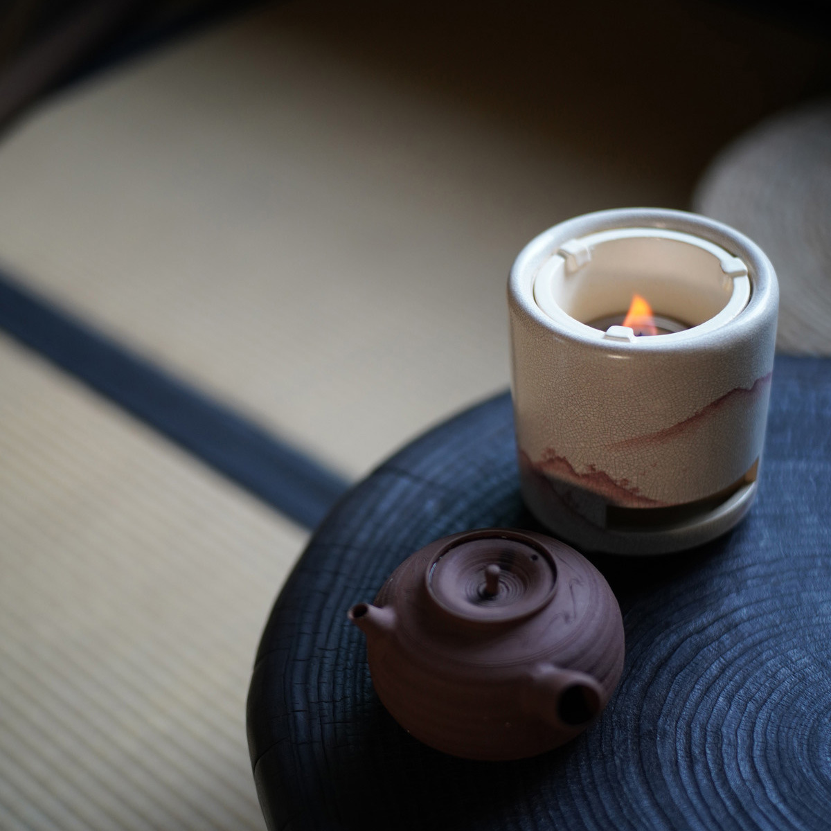 半斎松石一字煮茶炉礼箱中国式白陶泥炭炉工夫茶炉炭素炉アルコール炉セット