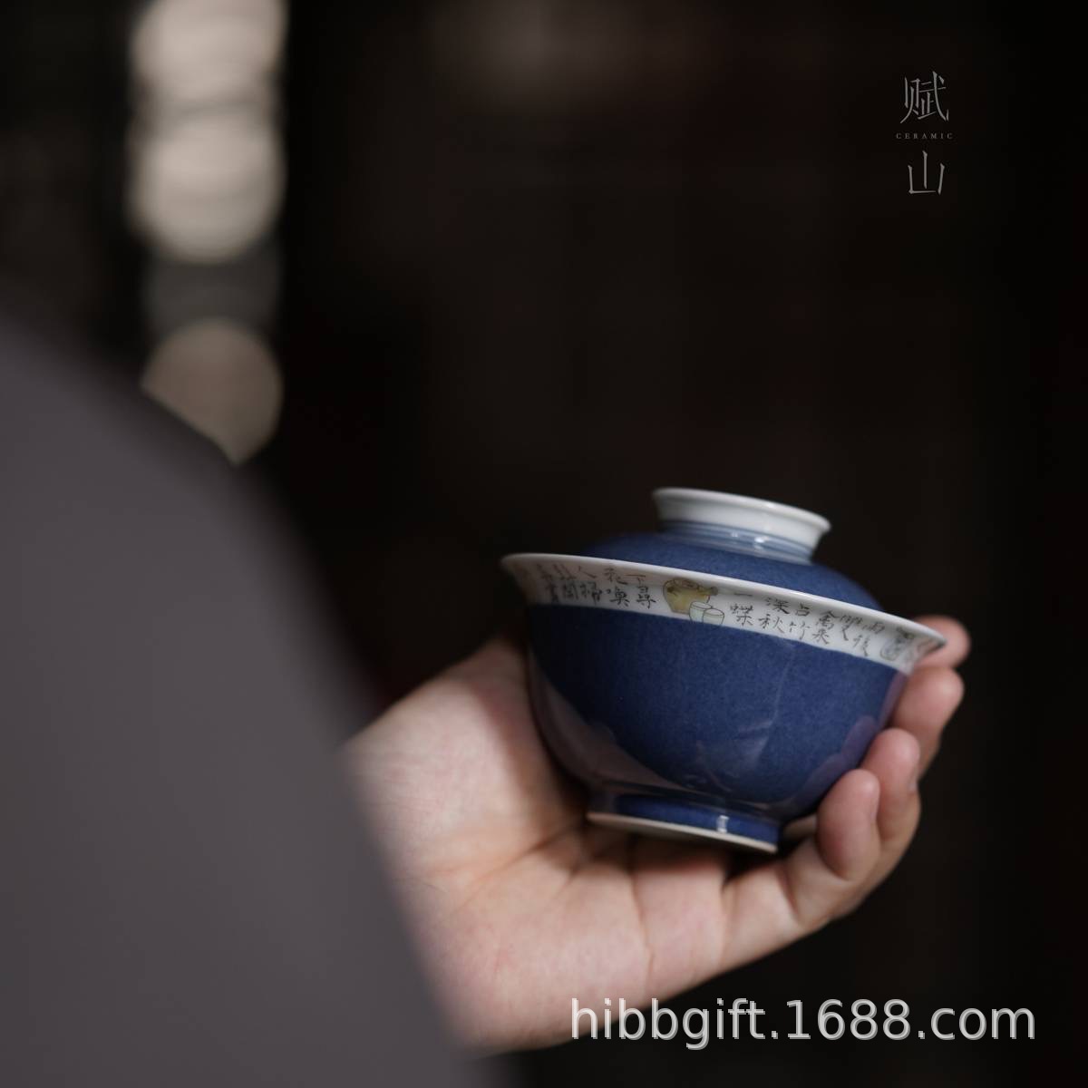 新商品は山堂蓋碗北斎雨の後に青清をかけて蓋碗の手描きのお茶を入れます。