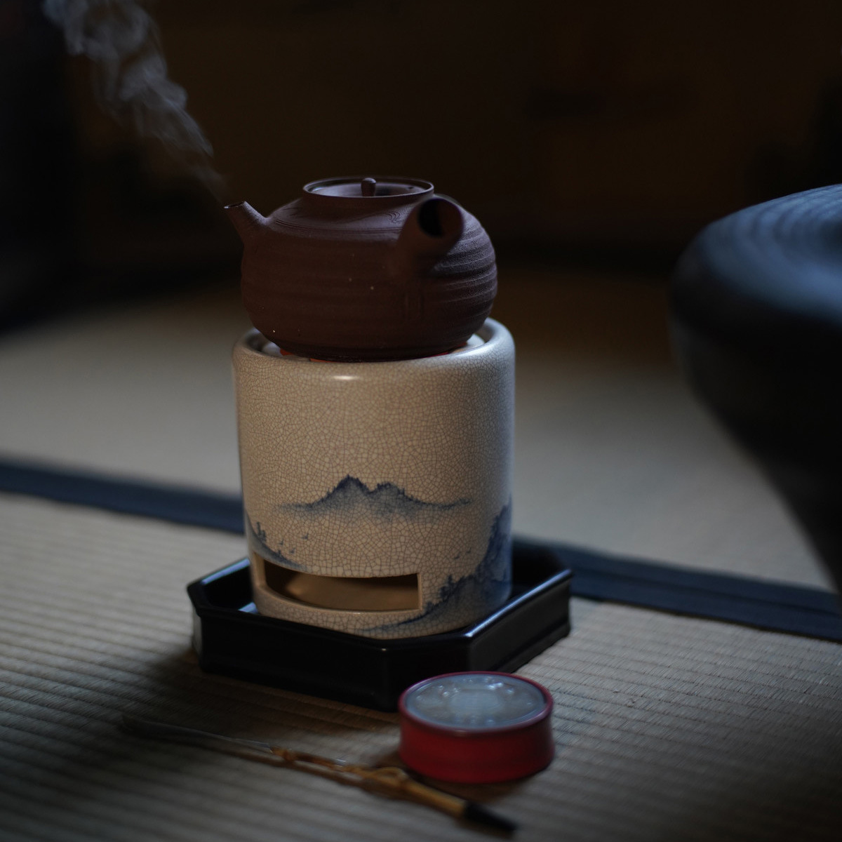 梵山堂青花山水方口一字炉手作り泥炉風炉木炭炉煮茶器家庭用お茶ストーブ