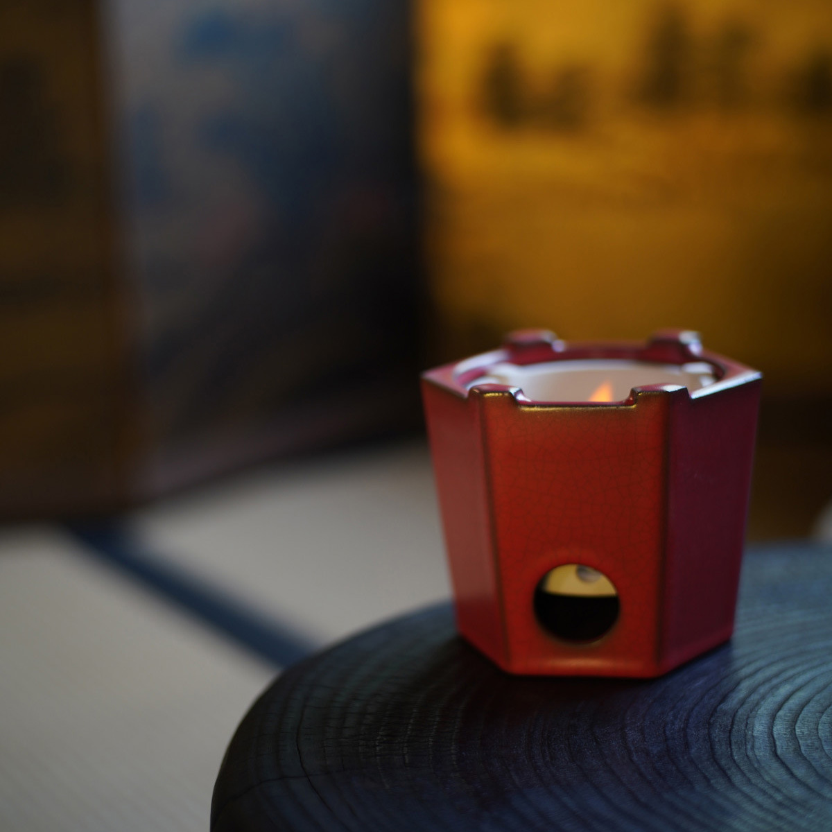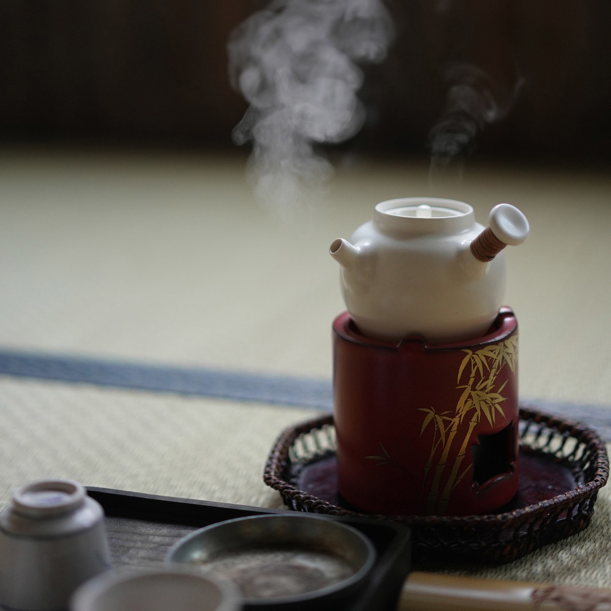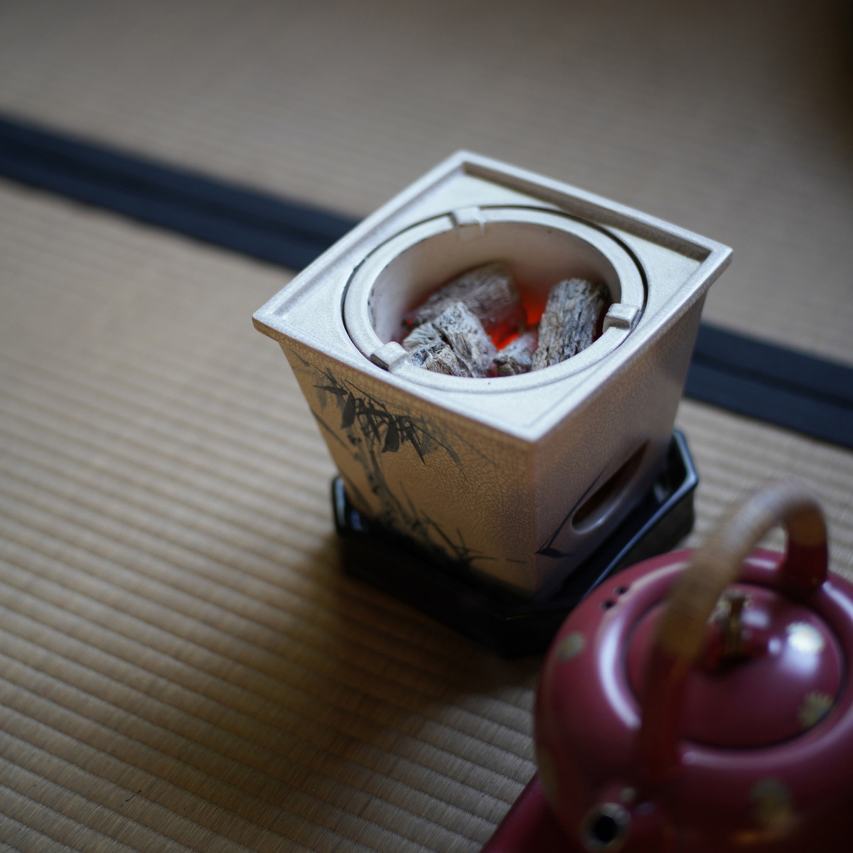 新商品の梵山堂千山翠六方炉の炭素炉は炭を沸かしてお茶を煮ます。