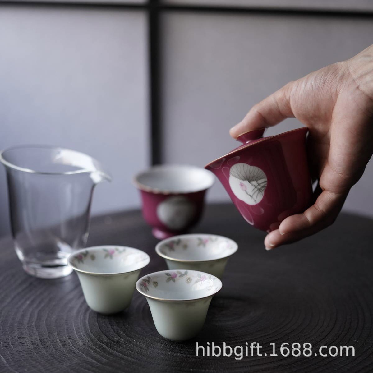 山堂礼箱セットの手描き紅墨荷セットの工夫茶道具セットの生産代理