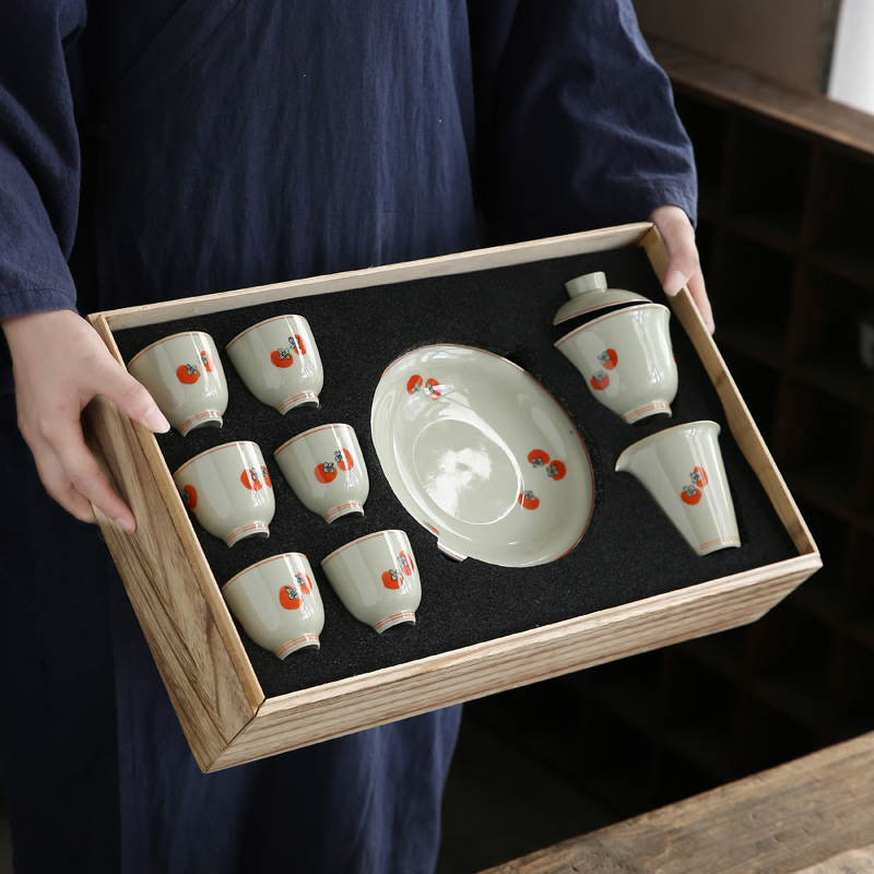 手描き柿工夫茶器セット草木灰泡茶蓋ティーポットカップオフィス軽贅沢ギフトボックスプレゼント