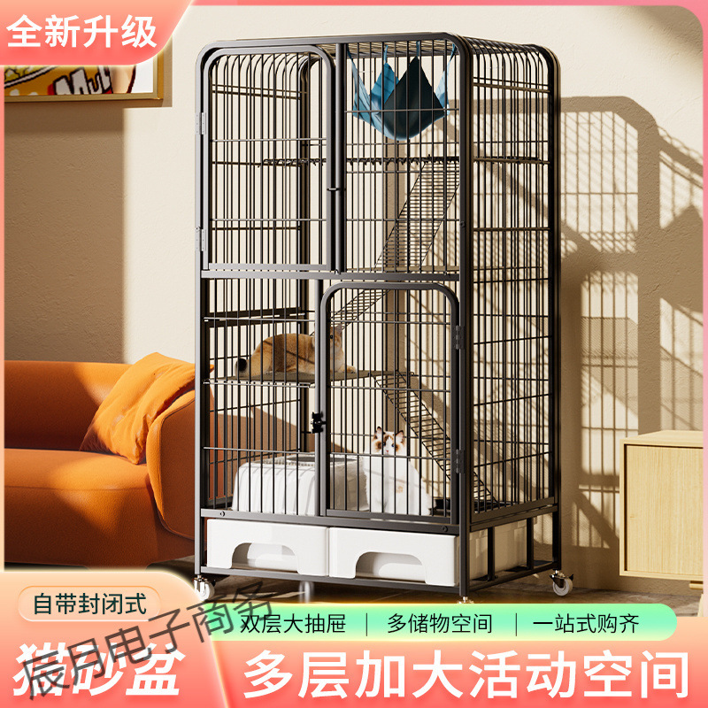 猫ケージ家庭用室内自由空間一体超巨大猫ケージ小型トイレ付き猫舎猫ケージ