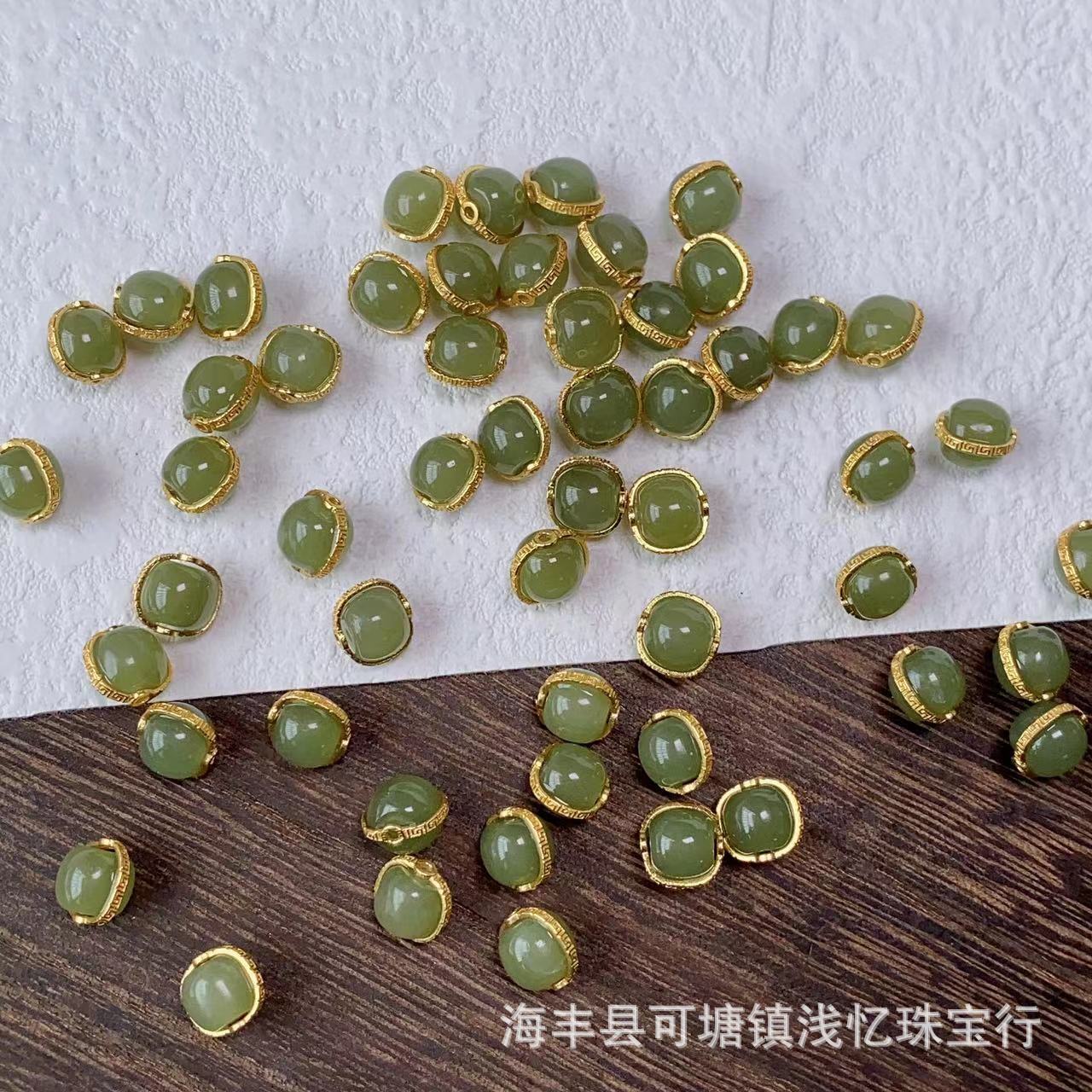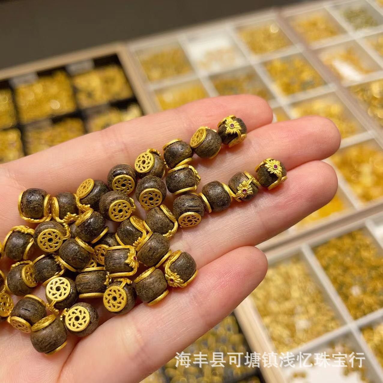 銀金メッキ和田玉包辺diyアクセサリー古法金モザイクビーズdiyブレスレット手串通孔部品