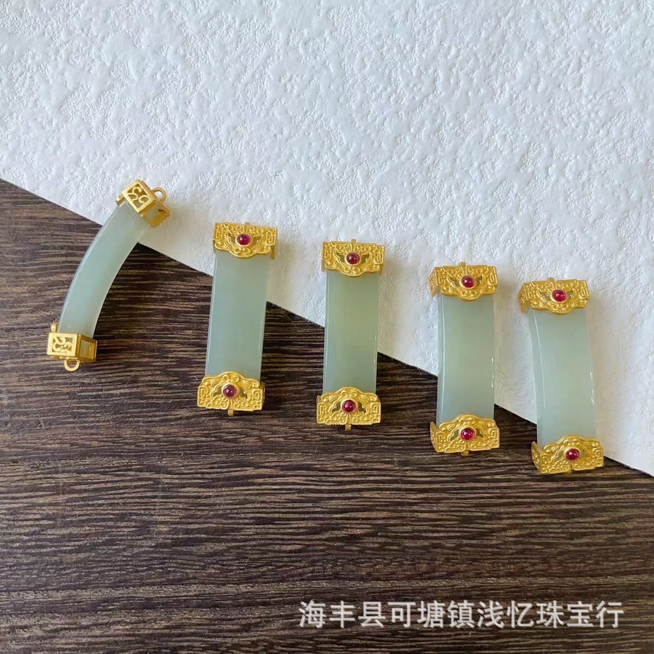 天然和田玉s925銀金メッキモザイク手札レトロ百合国風diyアクセサリー卸売り