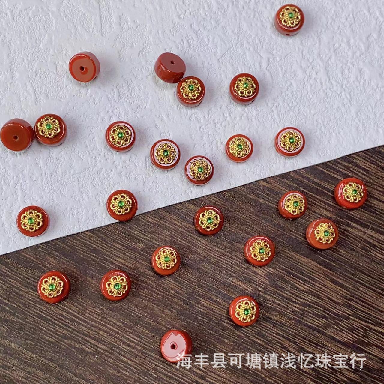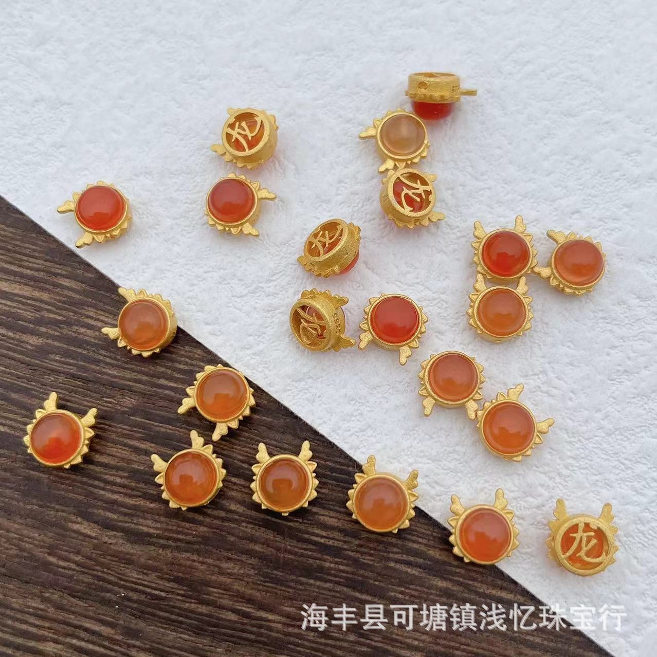 S925銀金メッキ龍年部品氷紅南紅メノウ豆龍通孔diyアクセサリー赤