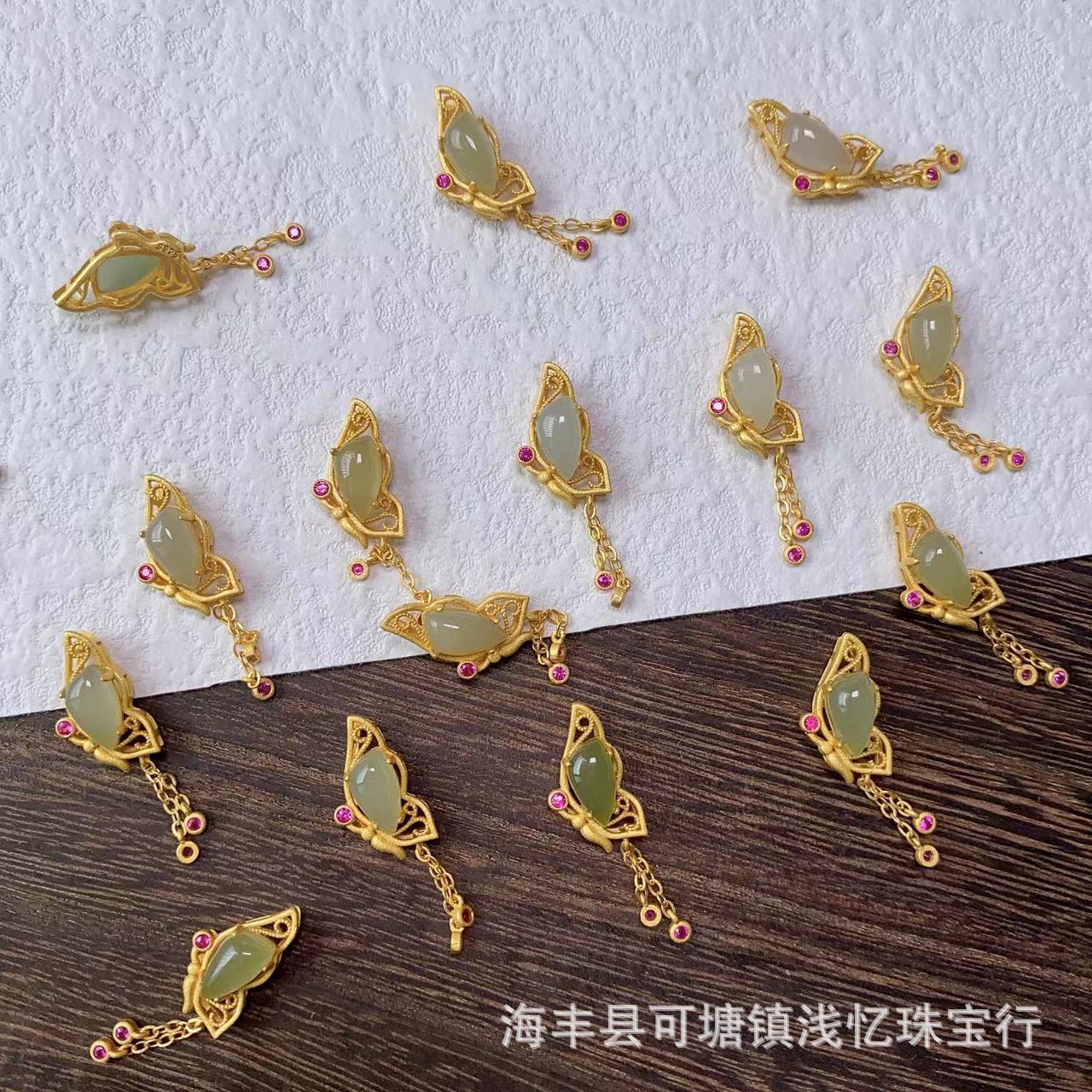 銀金メッキ和田玉diyアクセサリー古法金モザイク蝶流蘇翼diy手串アクセサリーアクセサリー