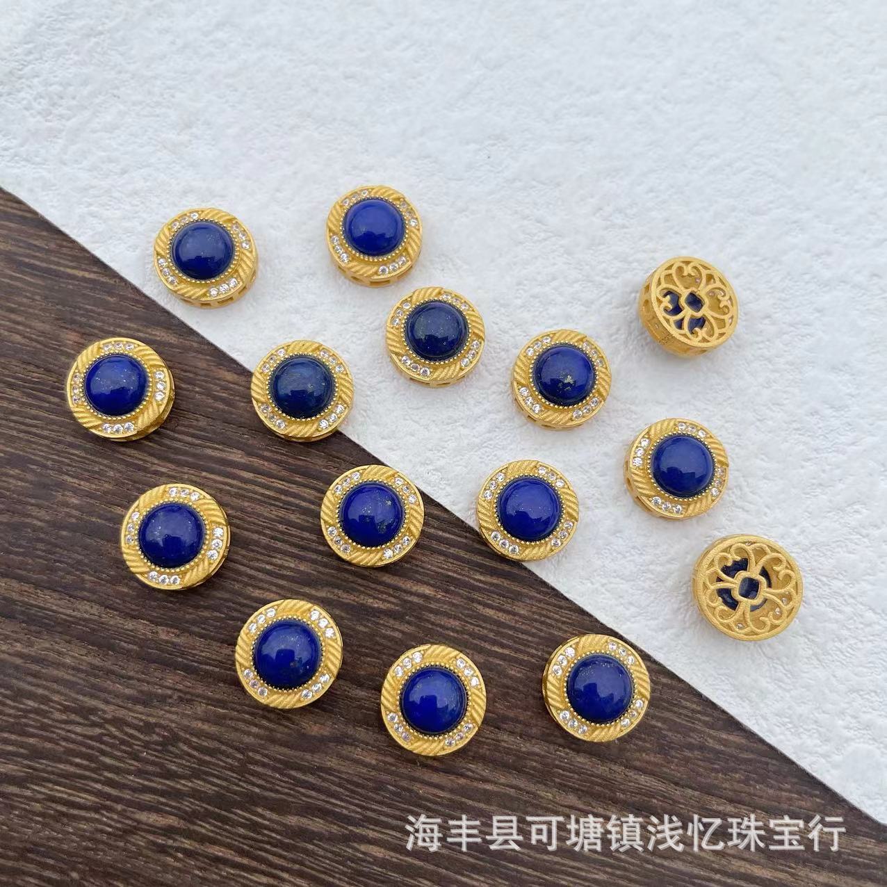 S925銀金メッキ青金石モザイク円形復古金ブルー手串diyアクセサリー