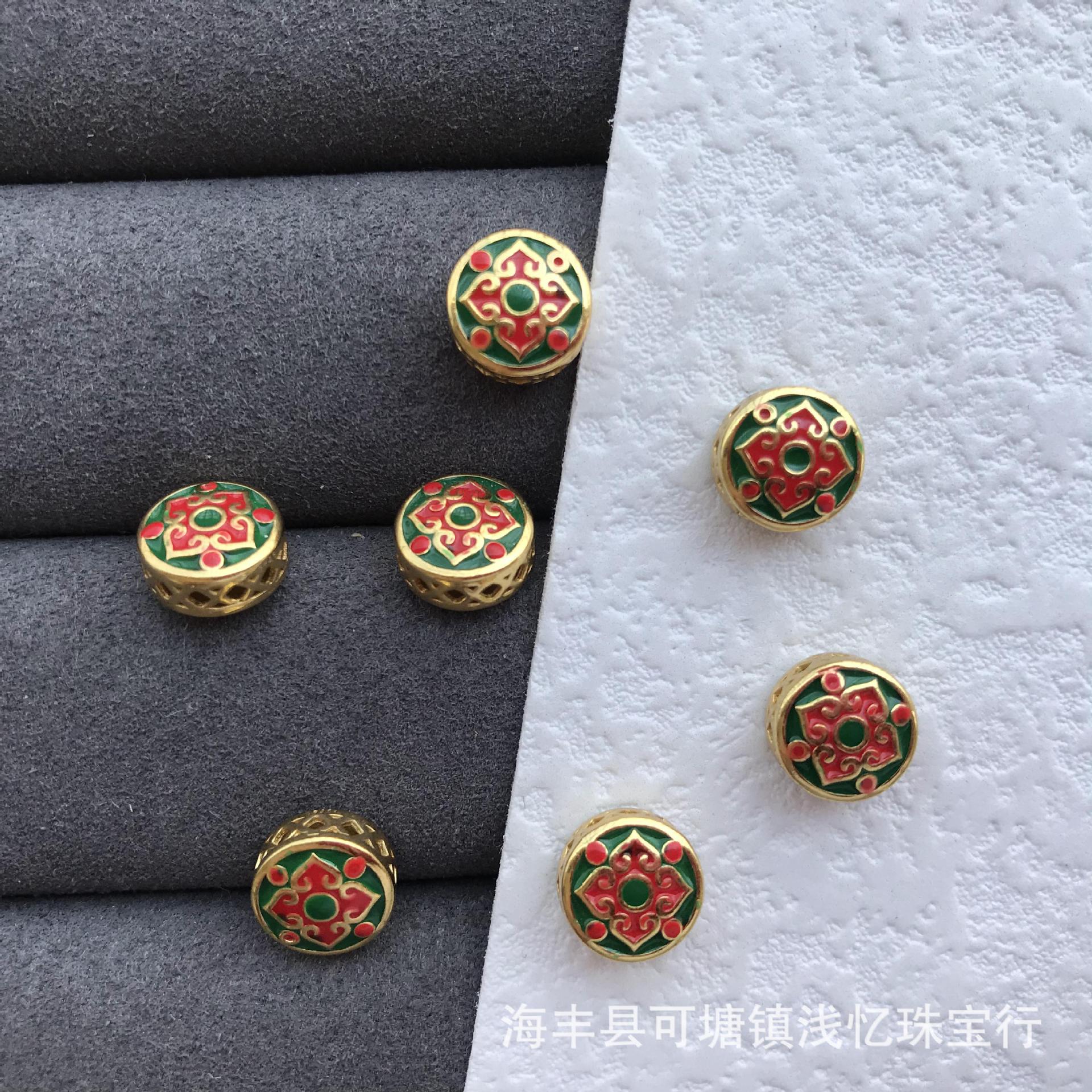 新古法焼青円形s925銀十字ブレスレットネックレス隔珠配珠国風通用diy部品